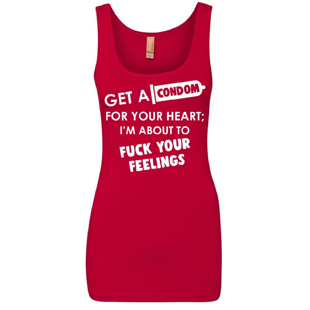 GET A CONDOM FOR YOUR HEART women's tank top funny rude offensive humor top red