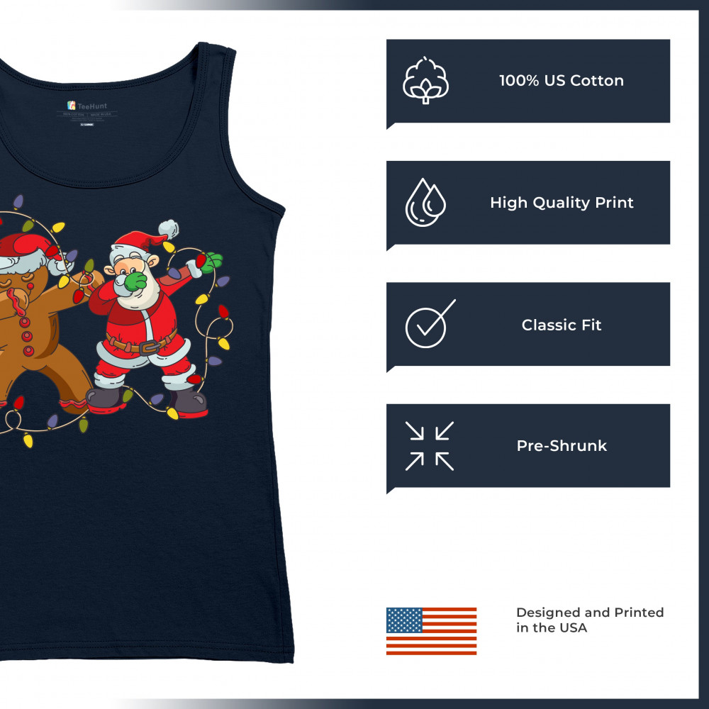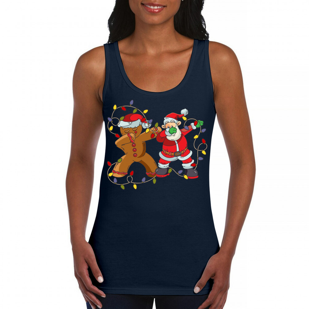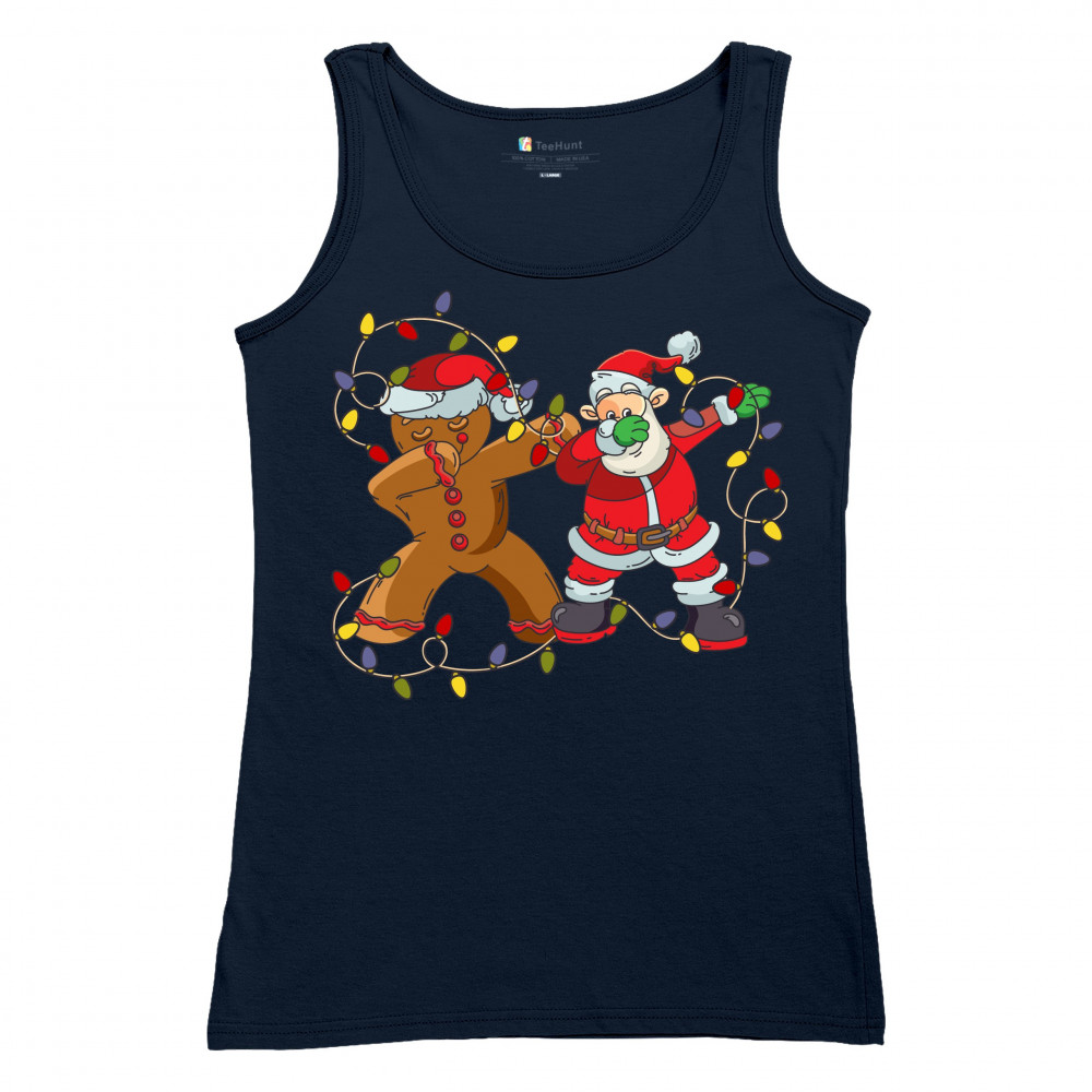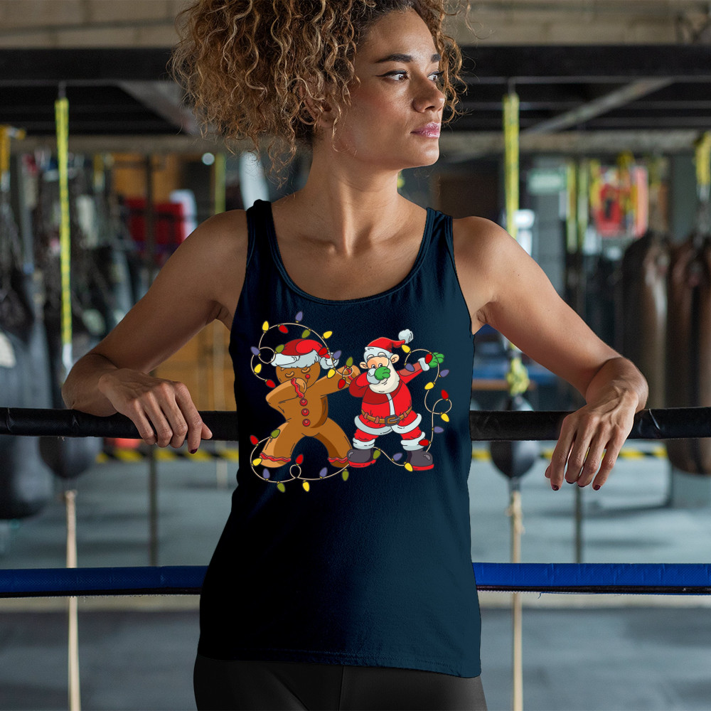 GINGERBREAD MAN AND SANTA CLAUS DAB DANCE women's tank top merry christmas navy blue
