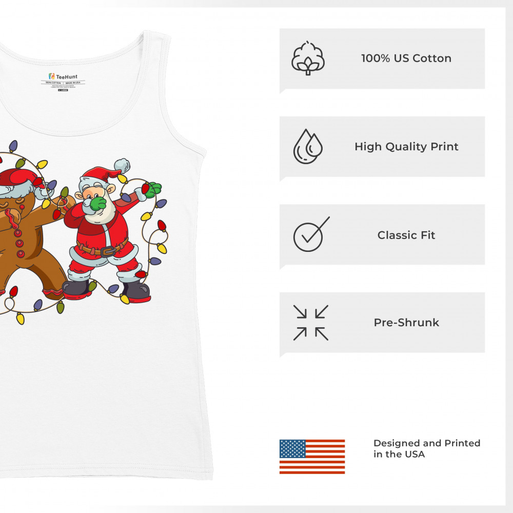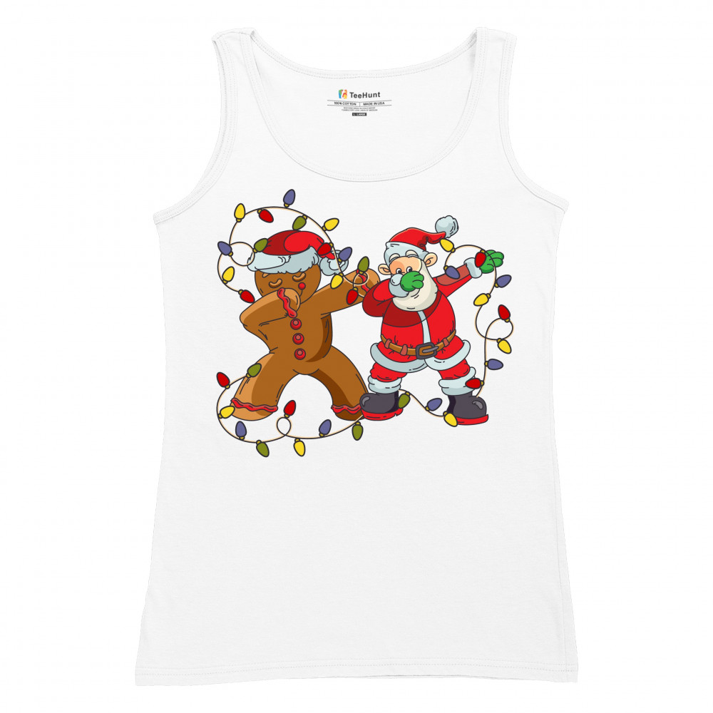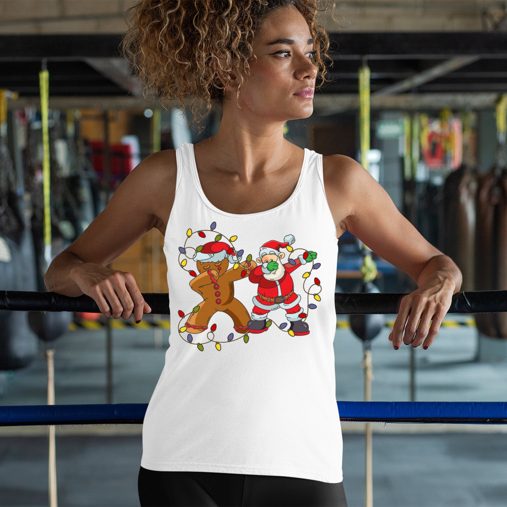 GINGERBREAD MAN AND SANTA CLAUS DAB DANCE women's tank top merry christmas white