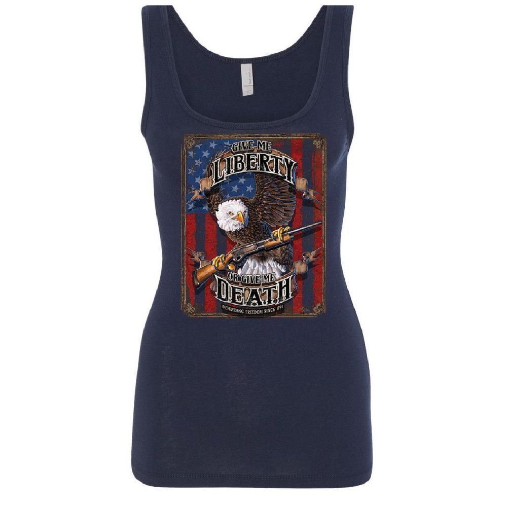 GIVE ME LIBERTY OR GIVE ME DEATH women's tank top eagle defend freedom 2a top navy blue