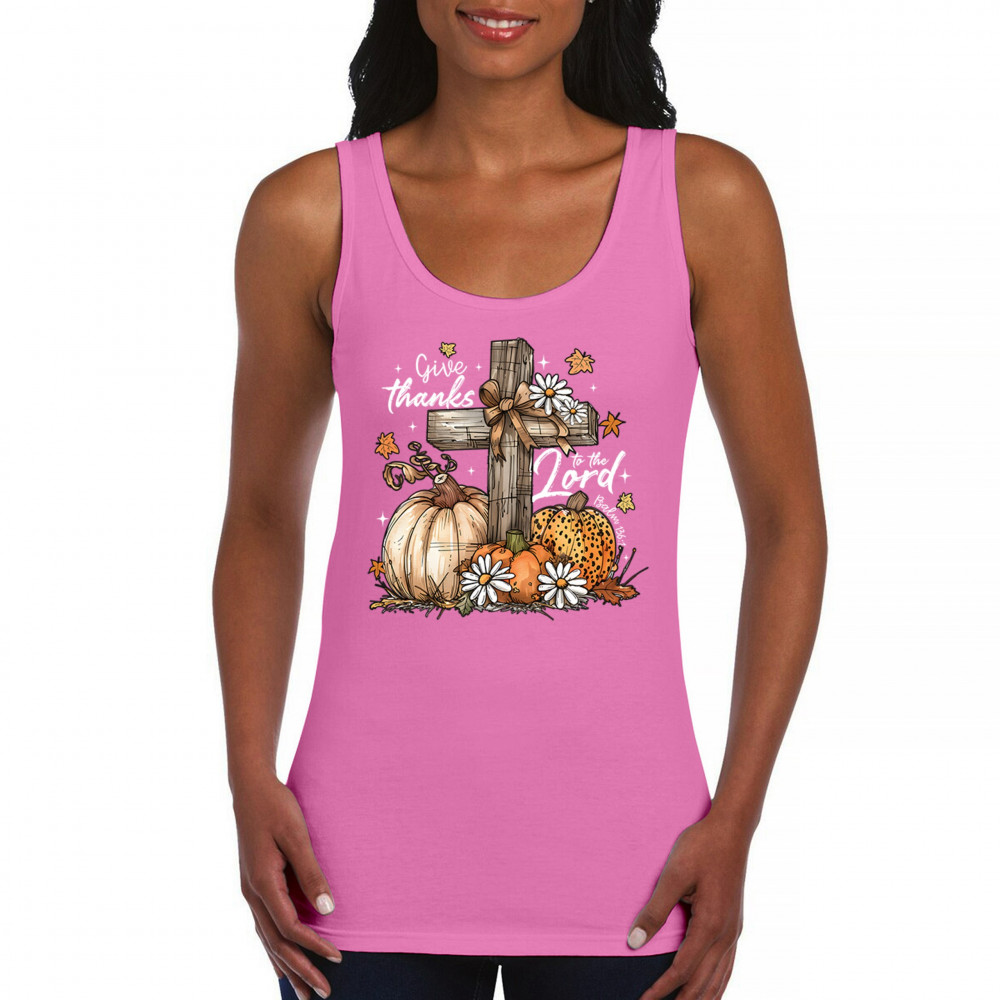 Thanksgiving design with pumpkins, daisies, and rustic cross. Perfect for Turkey Day, faithful family gatherings, and fall festival blessings.