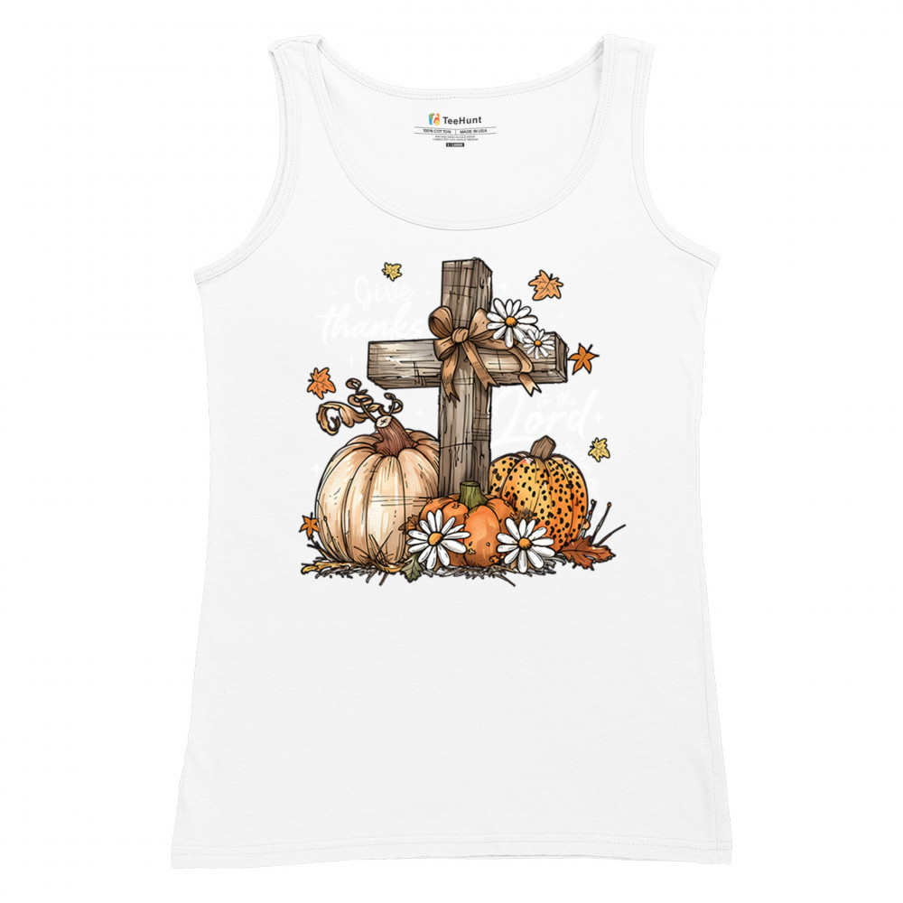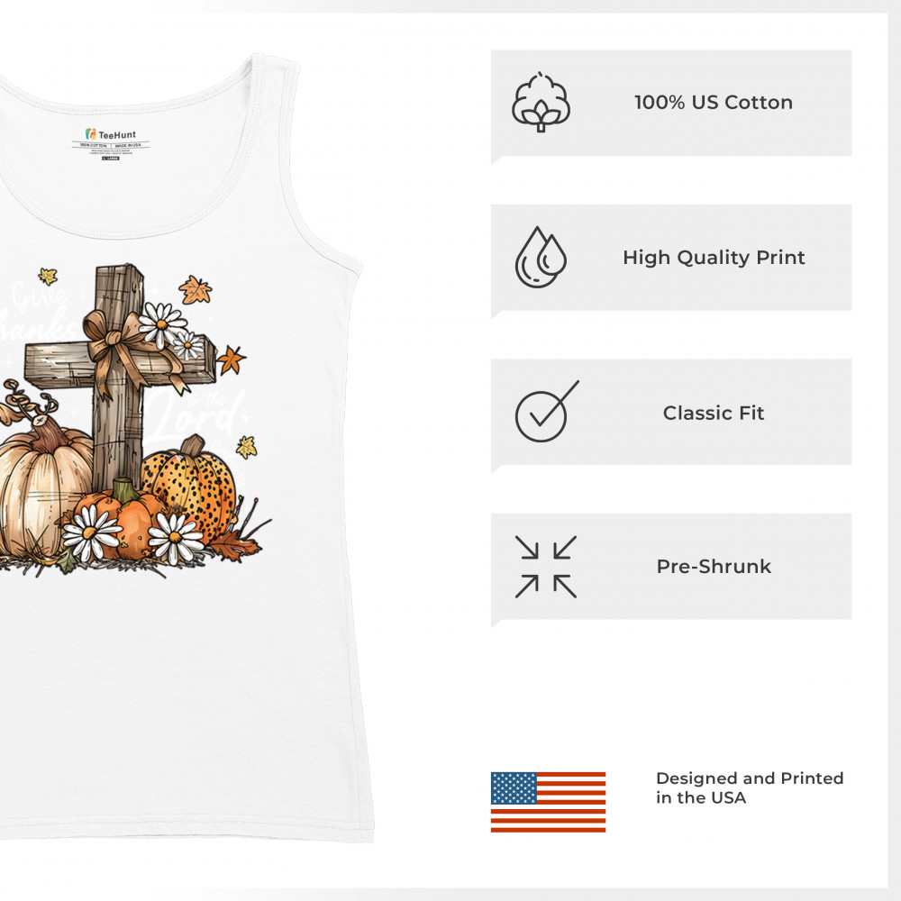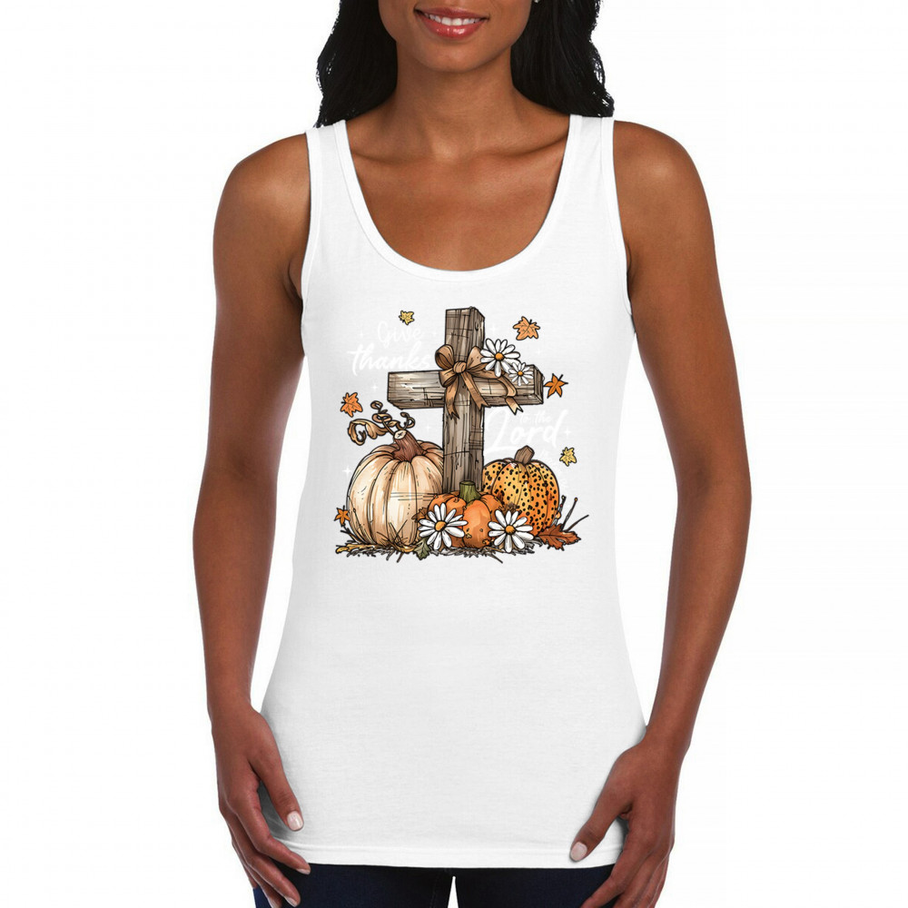 Thanksgiving design with pumpkins, daisies, and rustic cross. Perfect for Turkey Day, faithful family gatherings, and fall festival blessings.
