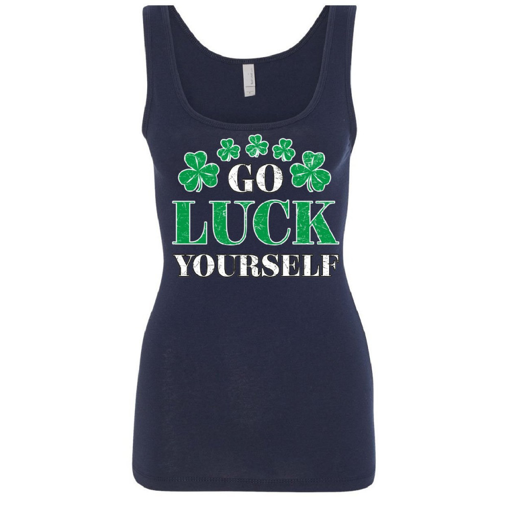GO LUCK YOURSELF women's tank top st. patrick's day offensive funny irish top navy blue