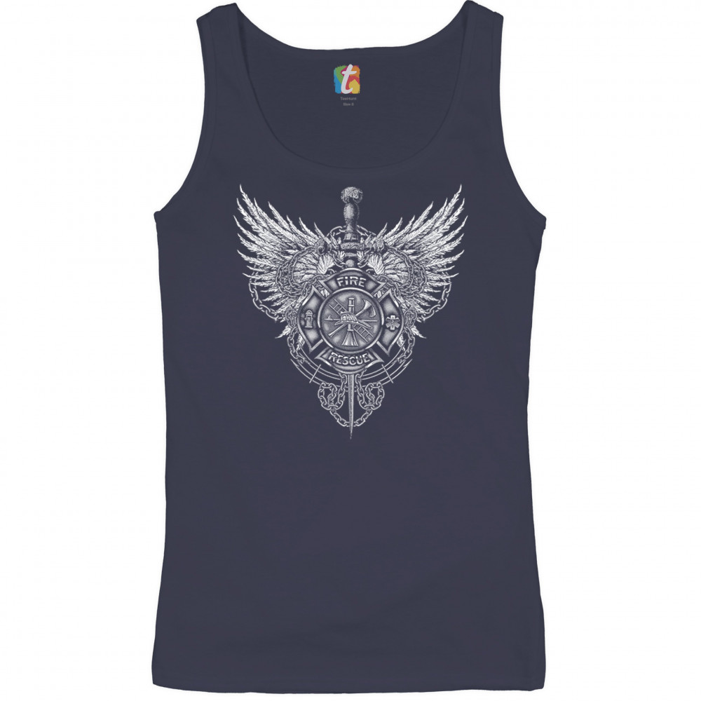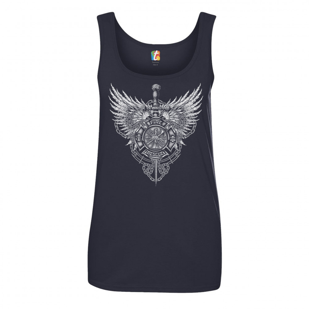 GOTHIC FIREFIGHTER EMBLEM women's tank top courage honor sacrifice navy blue