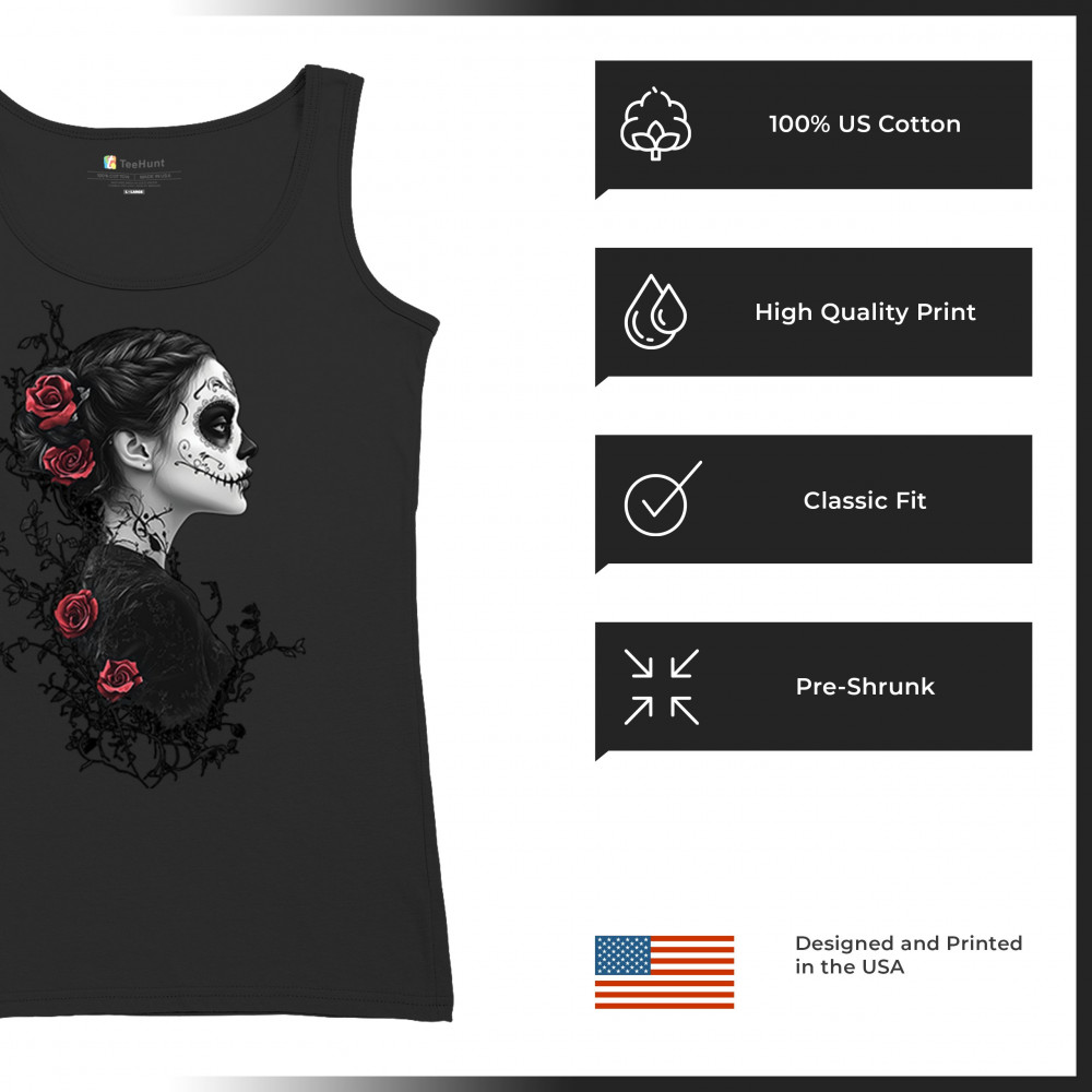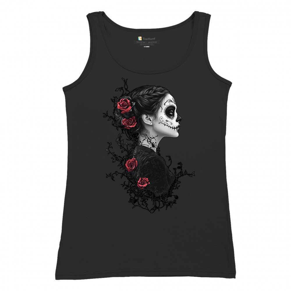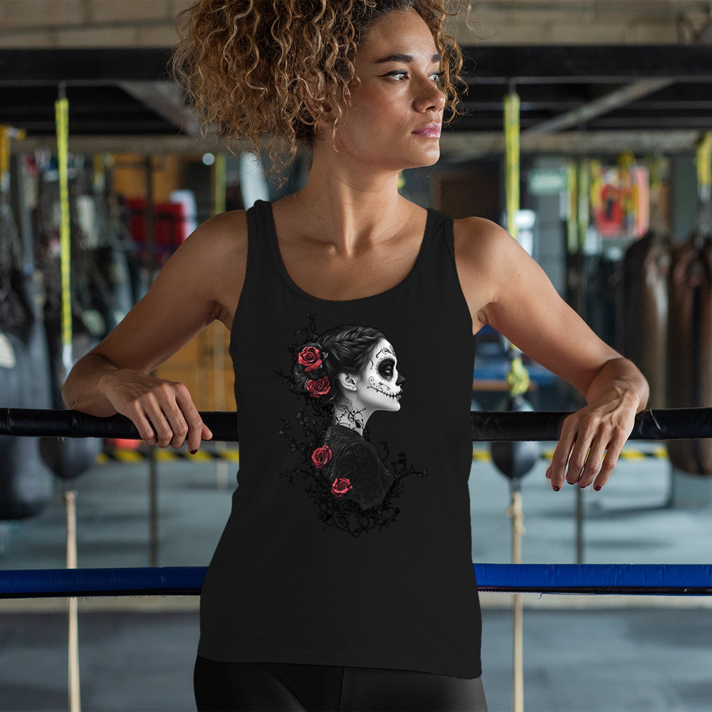 GOTHIC SUGAR SKULL ROSES women's tank top day of dead dark elegance skeleton black
