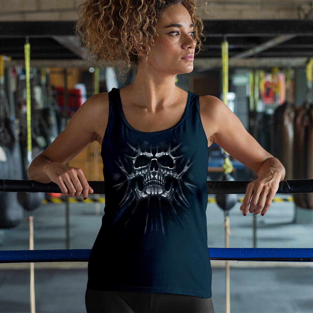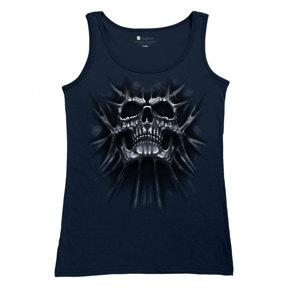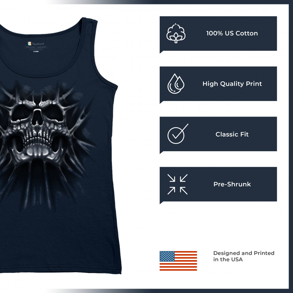Gothic skull biker shirt with roots design. Perfect for Metalhead, Rock n Roll fans, edgy rebel fashion, and spooky Halloween vibes.
