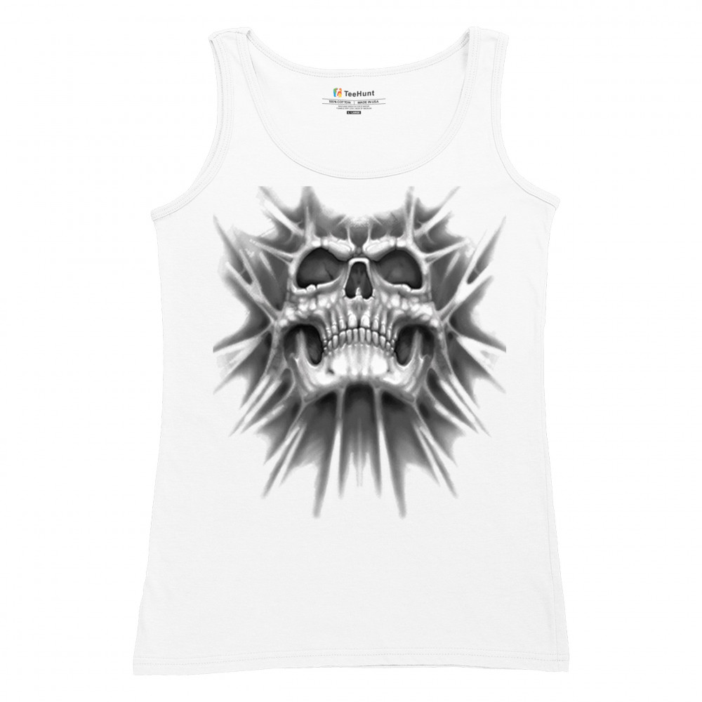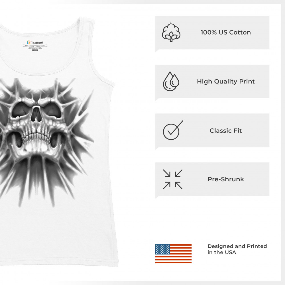 Gothic skull biker shirt with roots design. Perfect for Metalhead, Rock n Roll fans, edgy rebel fashion, and spooky Halloween vibes.