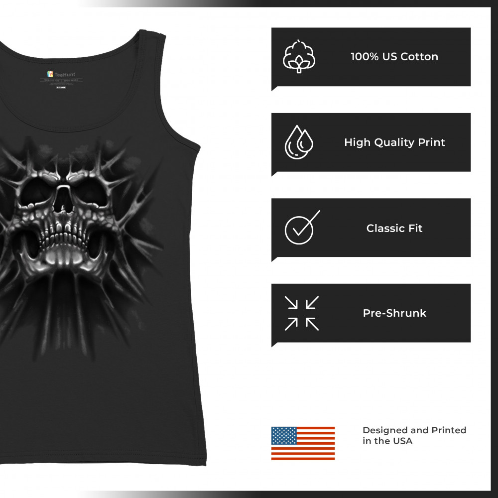 Gothic skull biker shirt with roots design. Perfect for Metalhead, Rock n Roll fans, edgy rebel fashion, and spooky Halloween vibes.