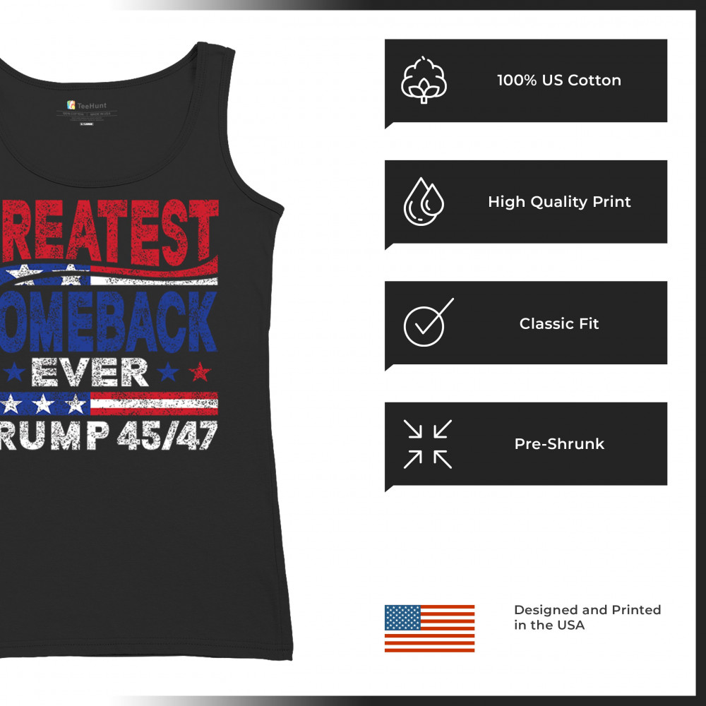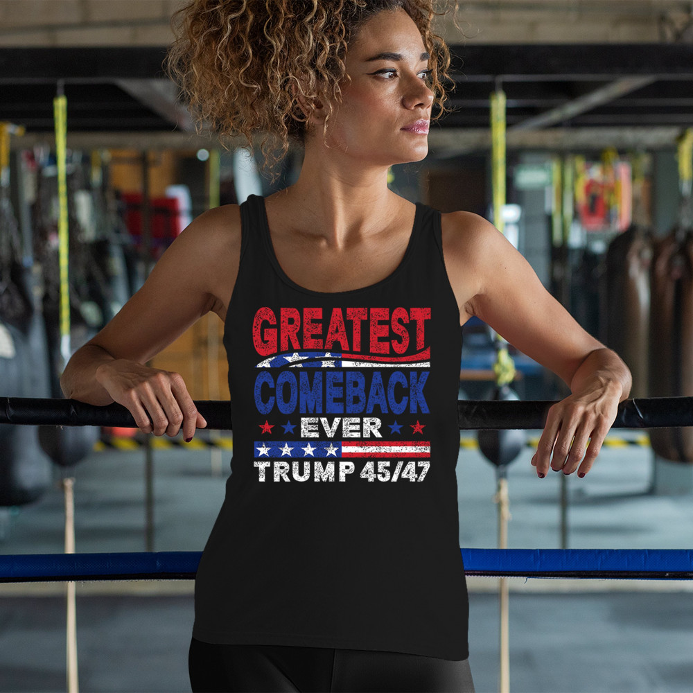 The "Greatest Comeback Ever" design is a tribute to resilience, patriotism, and the fight for American values. Featuring bold patriotic colors and a slogan that embodies the spirit of victory, this design is perfect for Trump supporters and conservatives who believe in never surrendering. Celebrate the leadership of Donald J. Trump as the 45th and 47th president and join the movement for America's future.