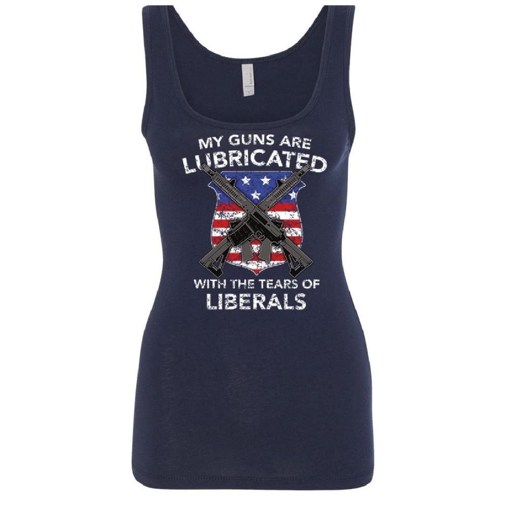 MY GUNS LUBRICATED WITH THE TEARS OF LIBERALS guns lubricated with tears of liberals women's tank top 2nd amendment top navy blue
