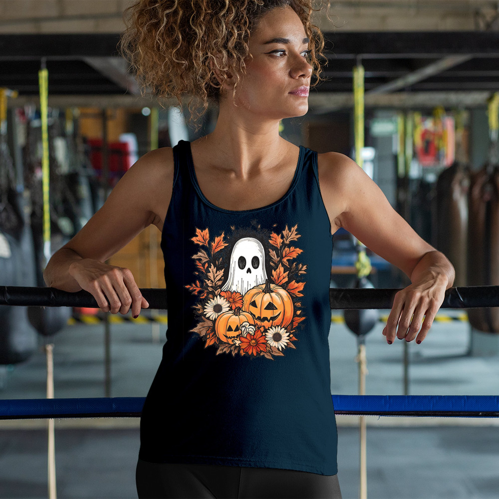 This pumpkin and ghost-themed design is perfect for Halloween and fall. Embrace the spooky season in style with this festive print!