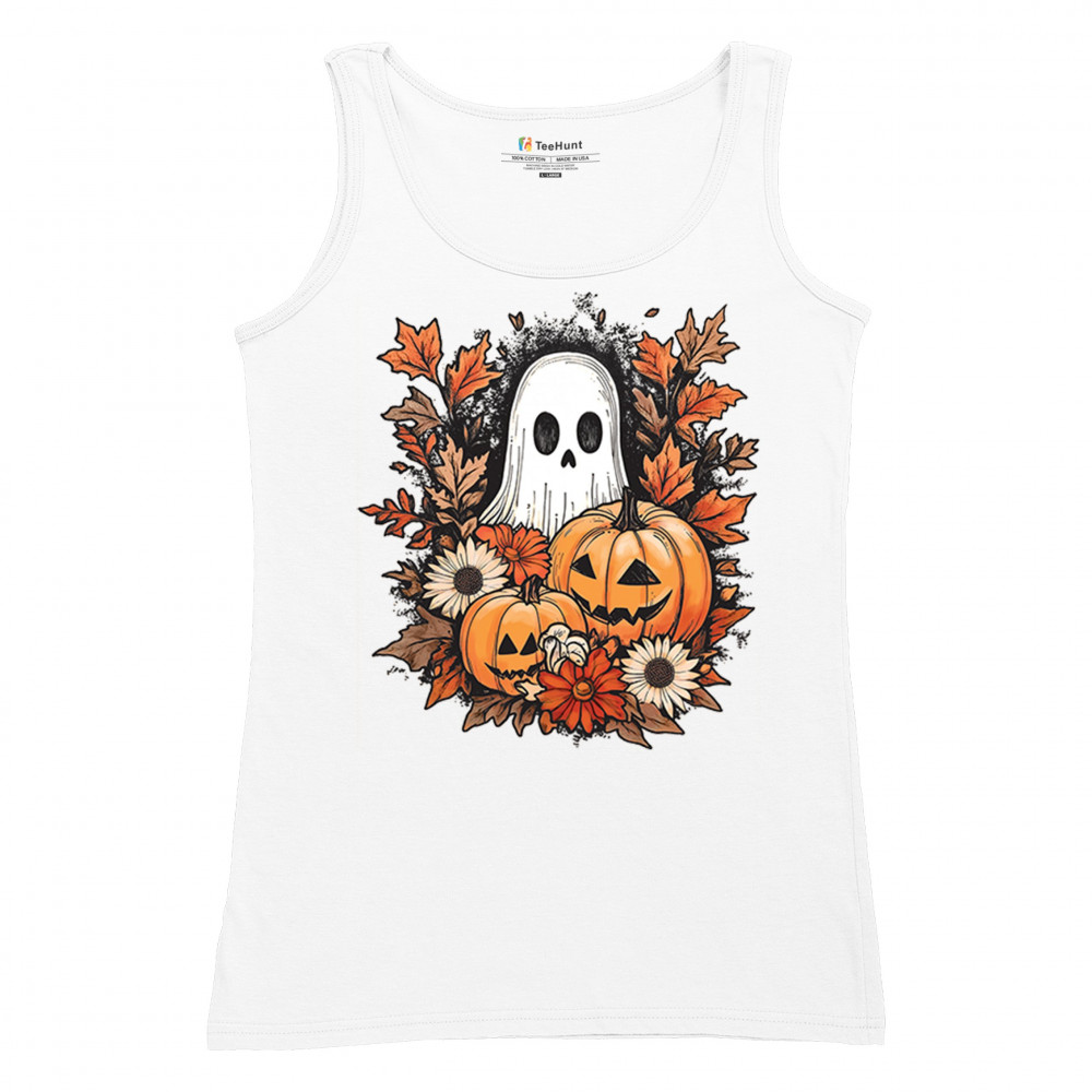 Celebrate the arrival of fall with this delightful design featuring pumpkins, autumn leaves, flowers, and a cute ghost. It's the perfect addition to your Halloween and autumn-themed wardrobe, or even as decor to welcome the fall spirit into your home. The combination of spooky and cozy elements creates a festive yet warm vibe, ideal for Halloween parties, pumpkin patch trips, or just enjoying the beautiful fall season.