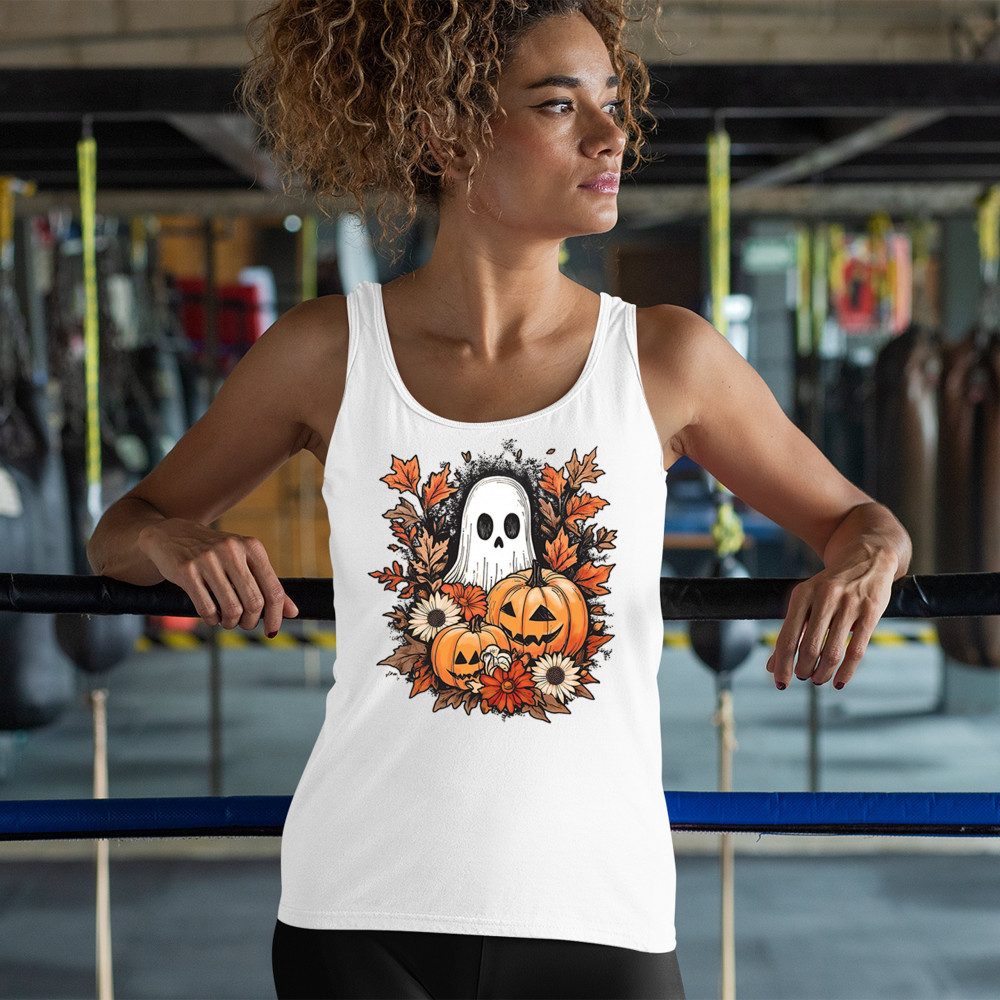 This pumpkin and ghost-themed design is perfect for Halloween and fall. Embrace the spooky season in style with this festive print!