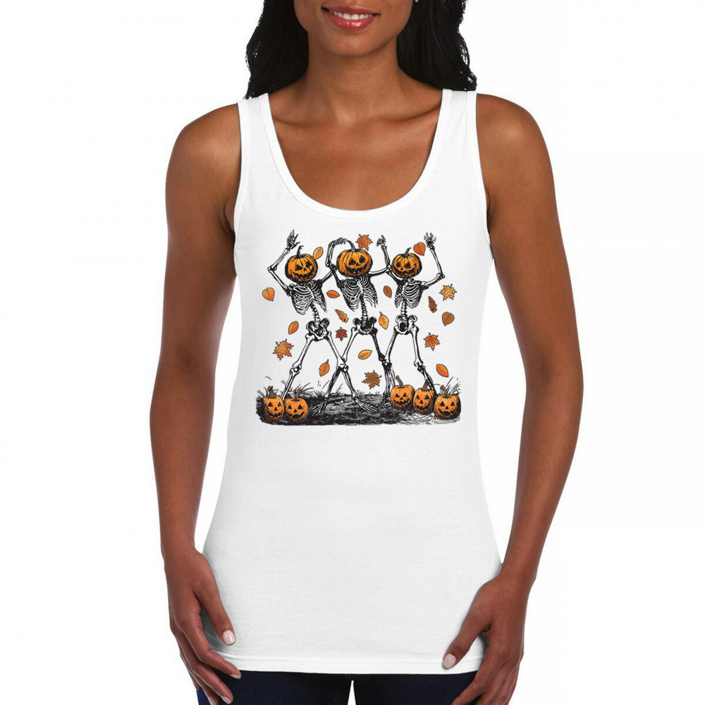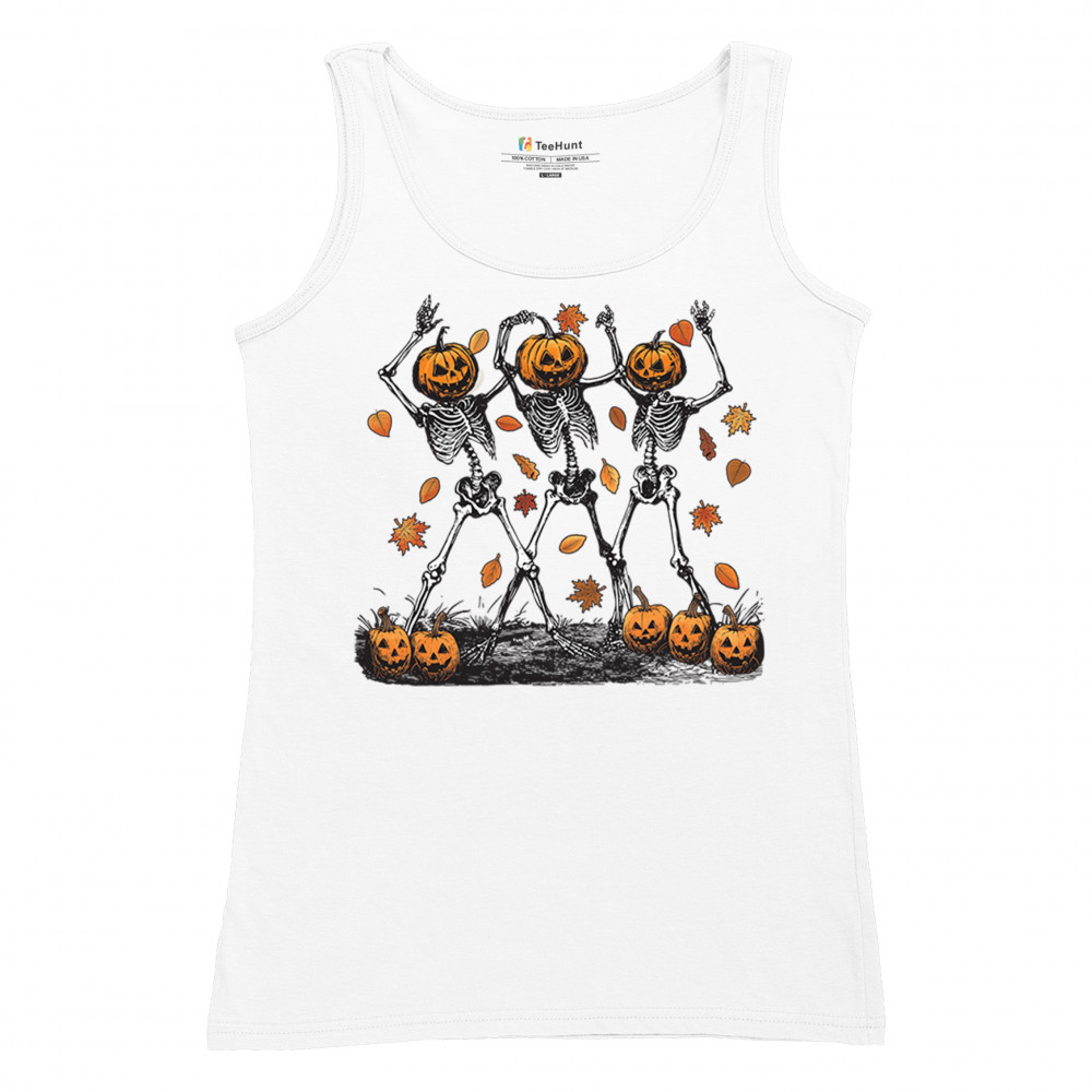 Add a touch of spooky fun to your wardrobe with this lively design featuring pumpkin-headed skeletons dancing through a swirl of autumn leaves. Perfect for Halloween parties, trick-or-treating, and fall festivals, this design is a must-have for anyone who enjoys the whimsical side of the spooky season. Made with comfort and quality in mind, this is the perfect apparel for all your October gatherings and events. Wear it to show off your Halloween spirit!