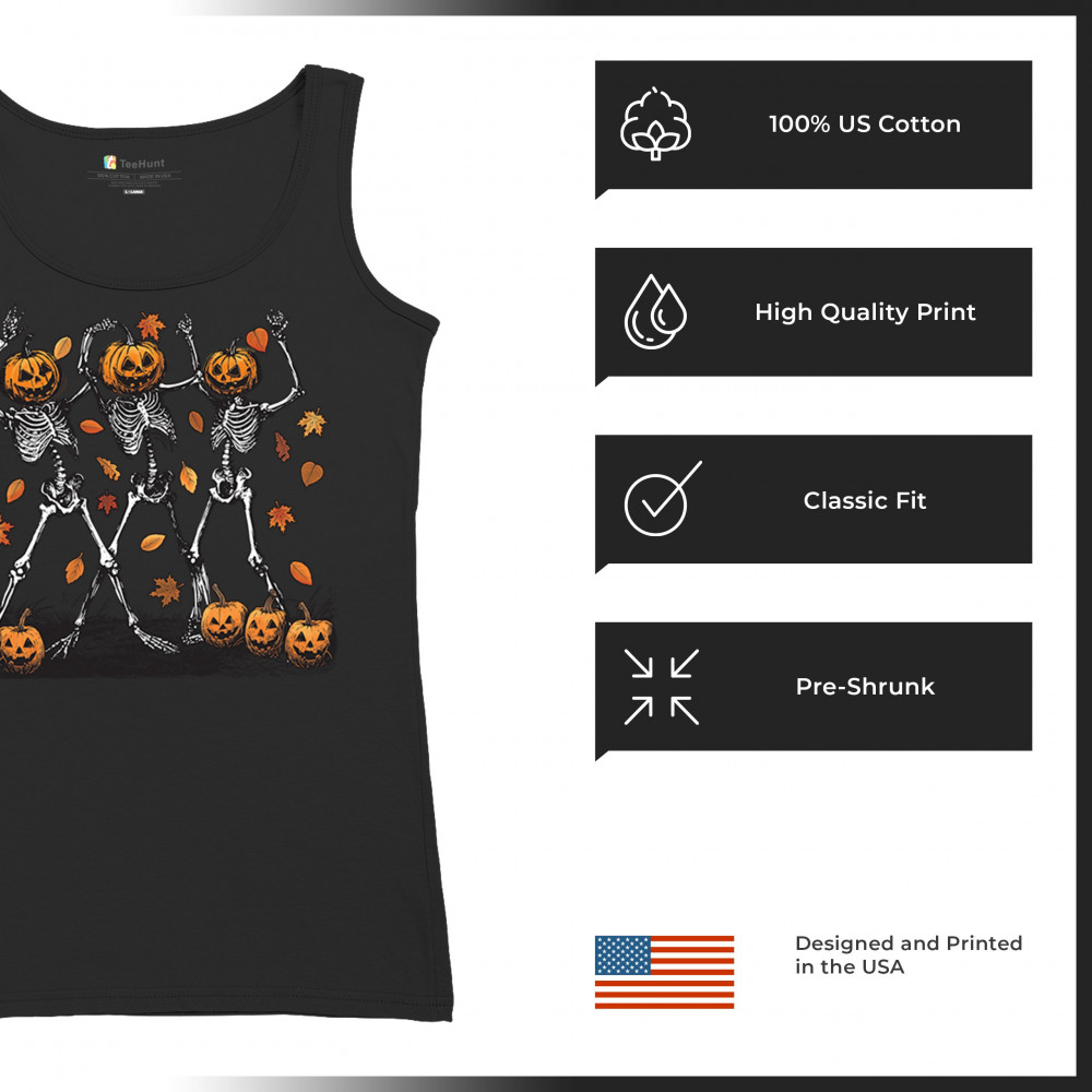 Add a touch of spooky fun to your wardrobe with this lively design featuring pumpkin-headed skeletons dancing through a swirl of autumn leaves. Perfect for Halloween parties, trick-or-treating, and fall festivals, this design is a must-have for anyone who enjoys the whimsical side of the spooky season. Made with comfort and quality in mind, this is the perfect apparel for all your October gatherings and events. Wear it to show off your Halloween spirit!