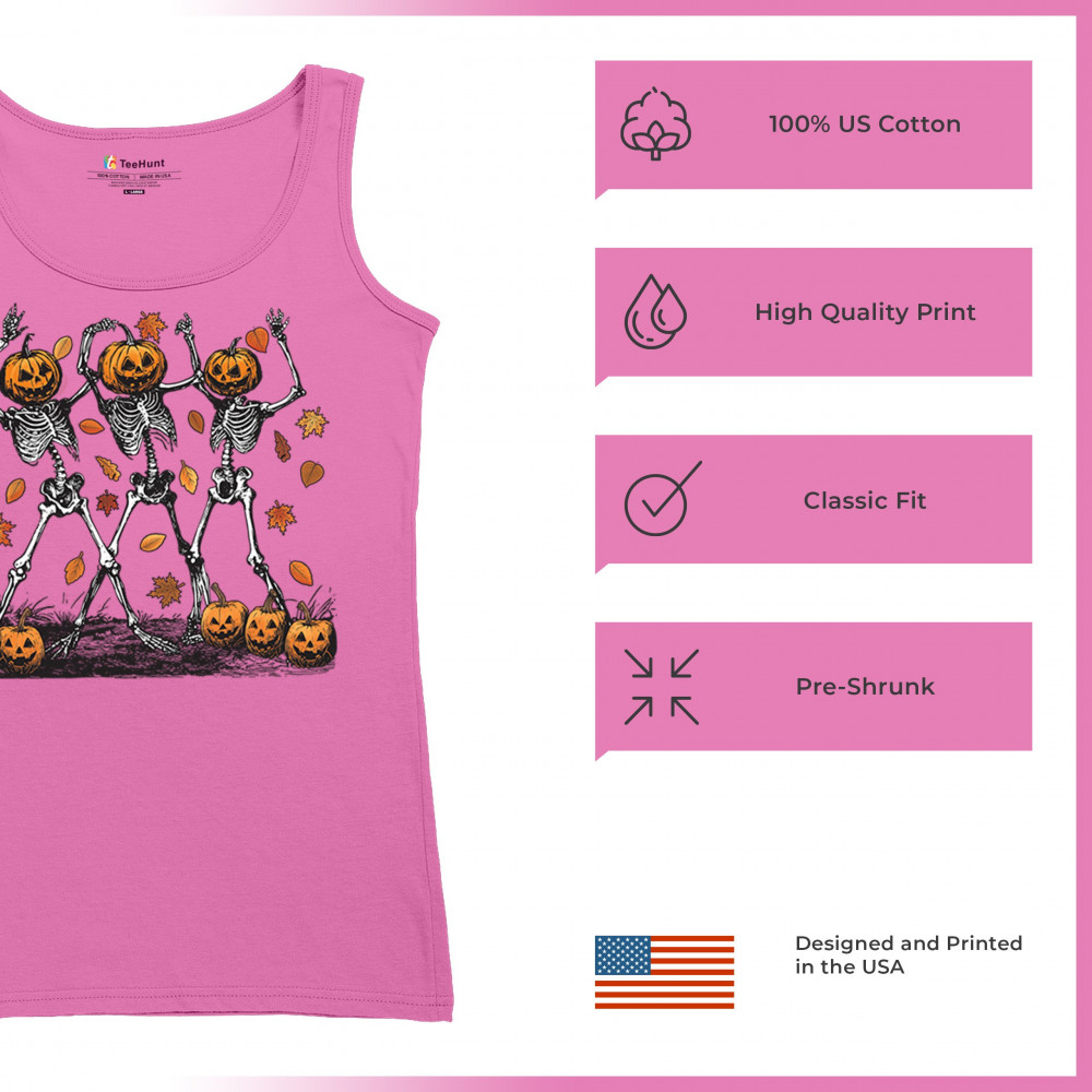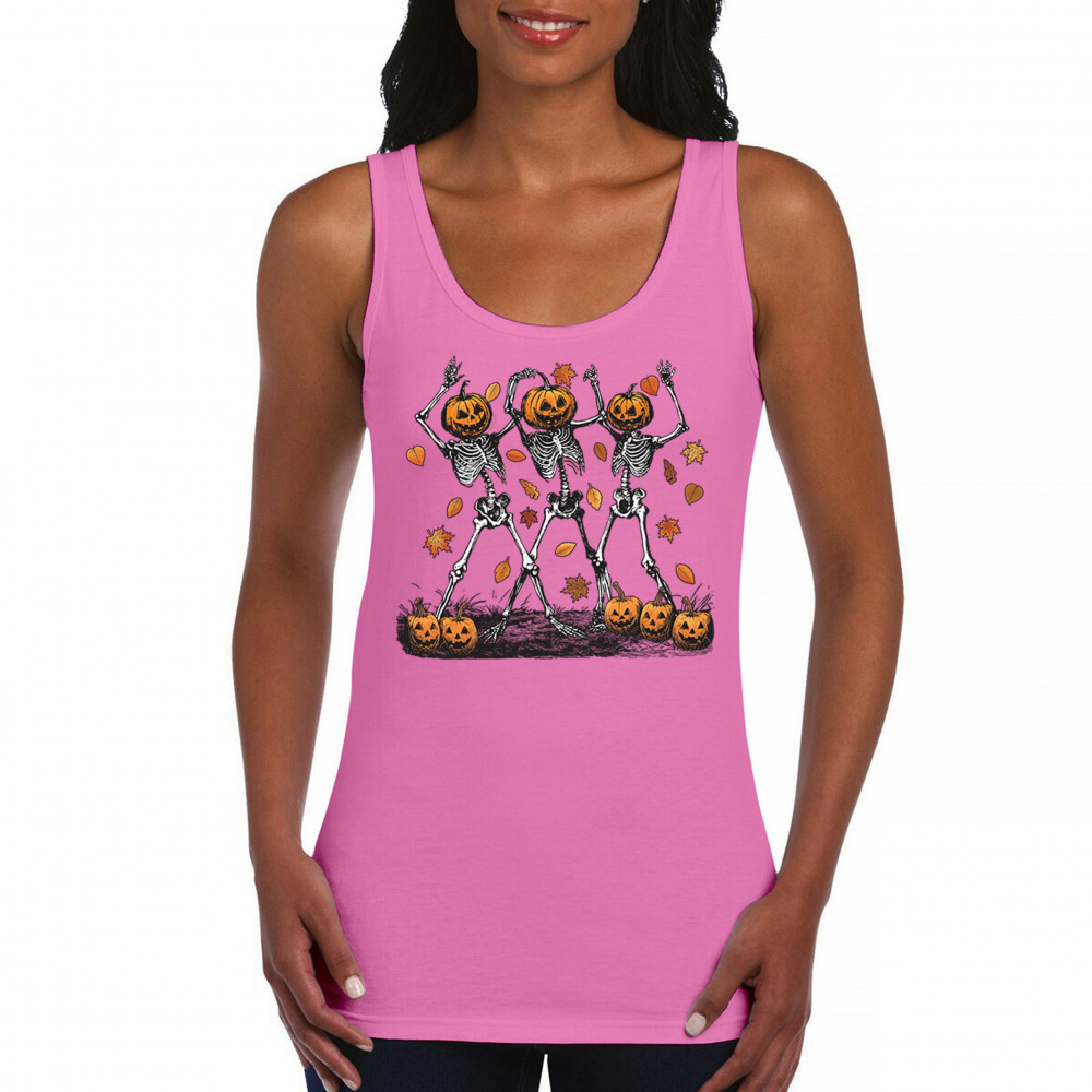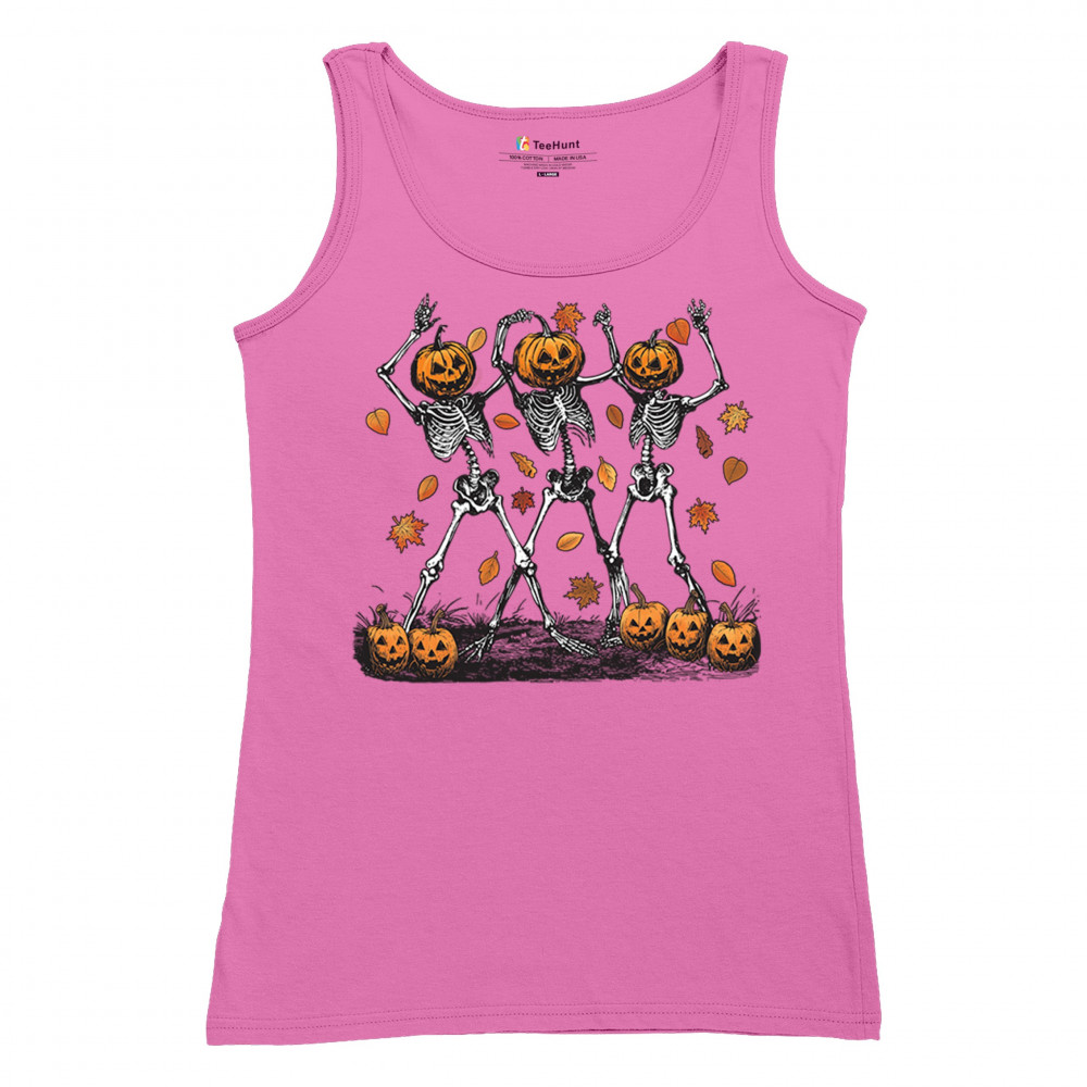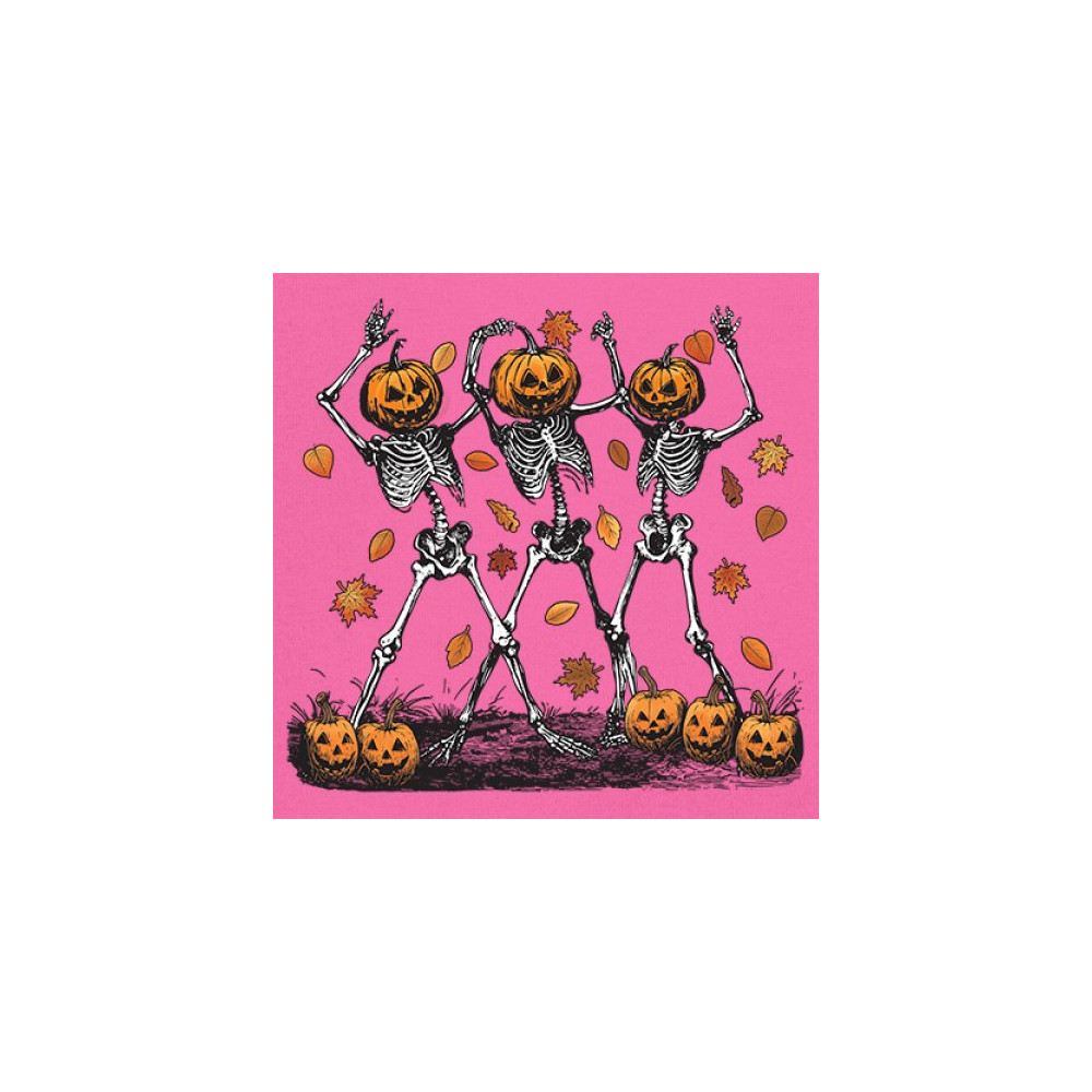 Add a touch of spooky fun to your wardrobe with this lively design featuring pumpkin-headed skeletons dancing through a swirl of autumn leaves. Perfect for Halloween parties, trick-or-treating, and fall festivals, this design is a must-have for anyone who enjoys the whimsical side of the spooky season. Made with comfort and quality in mind, this is the perfect apparel for all your October gatherings and events. Wear it to show off your Halloween spirit!