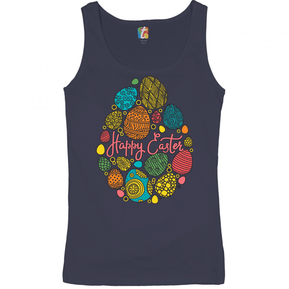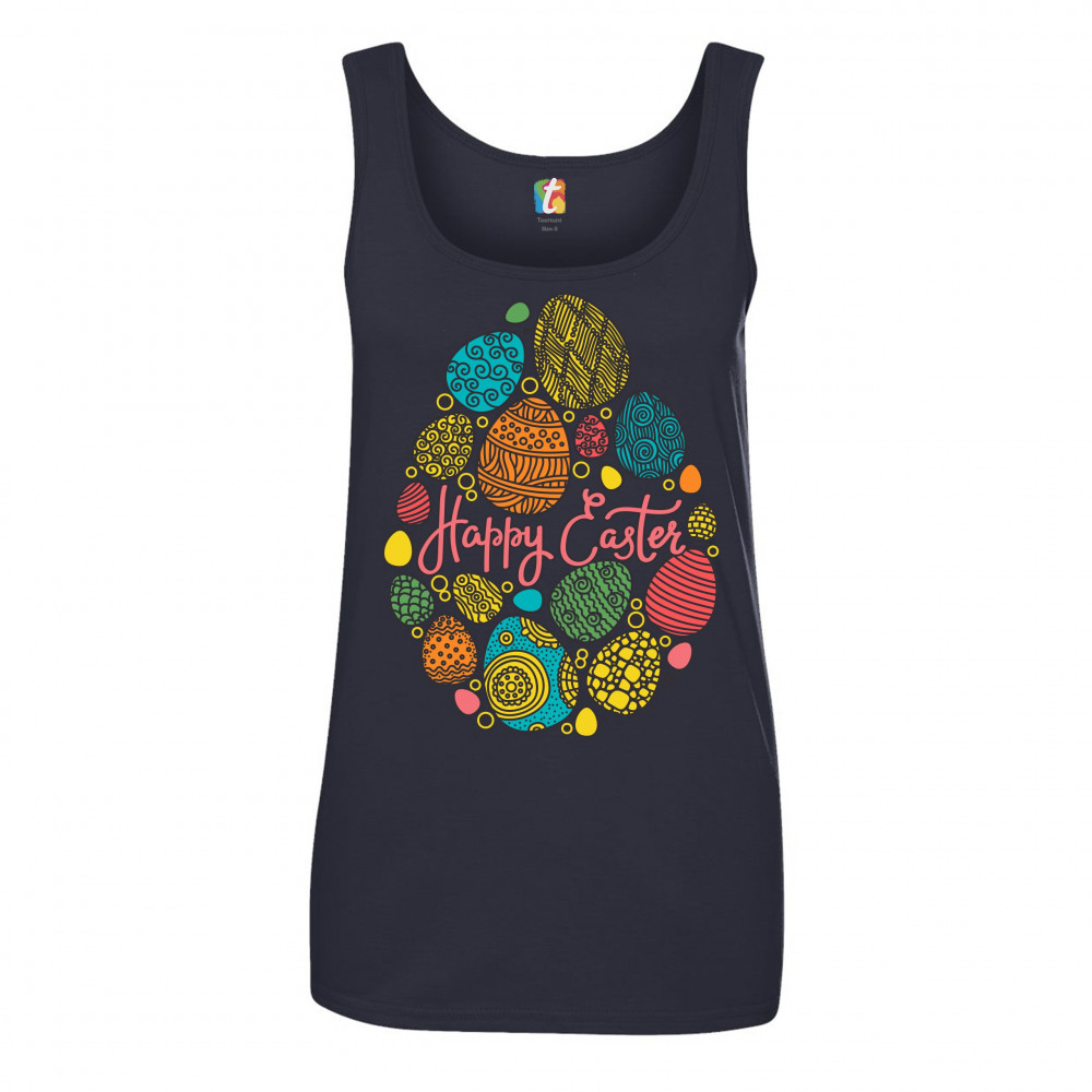 HAPPY EASTER women's tank top pascha easter eggs jesus ressurection sunday navy blue
