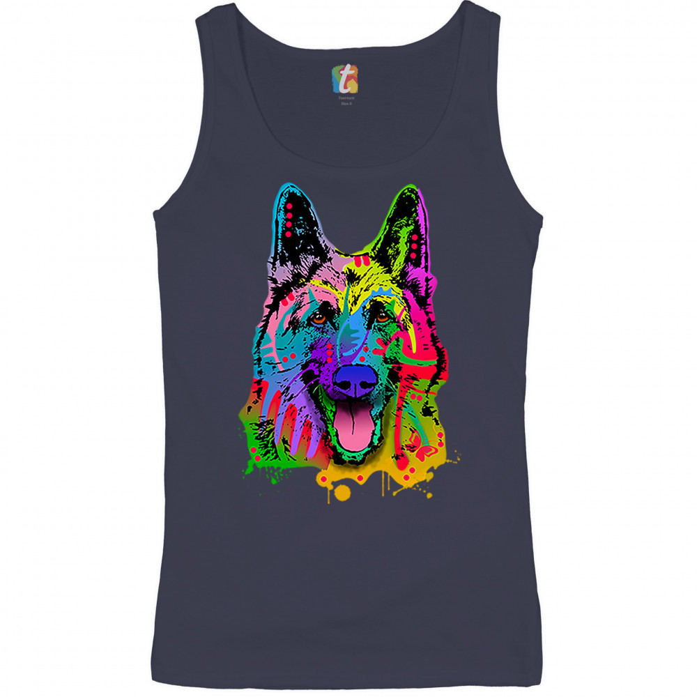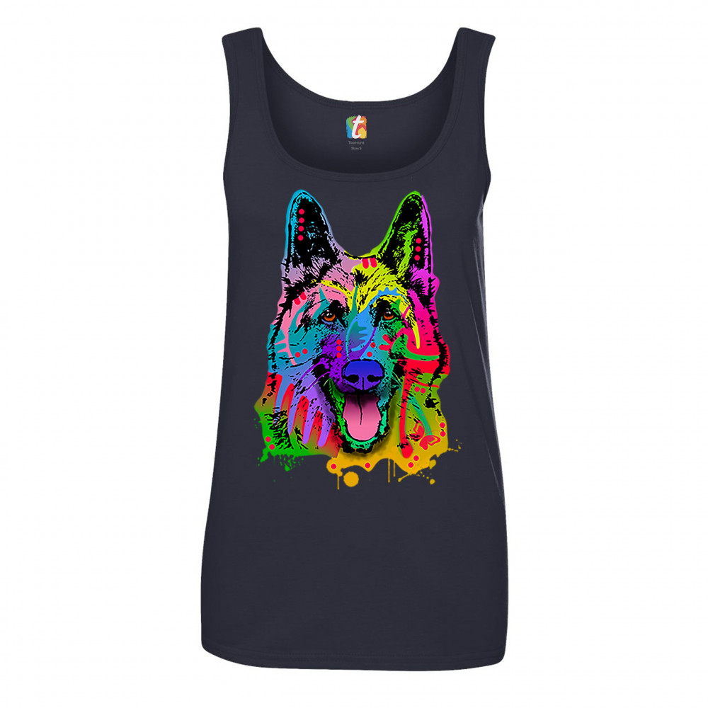 HAPPY GERMAN SHEPHERD women's tank top andy maxx i love my dog best friend navy blue