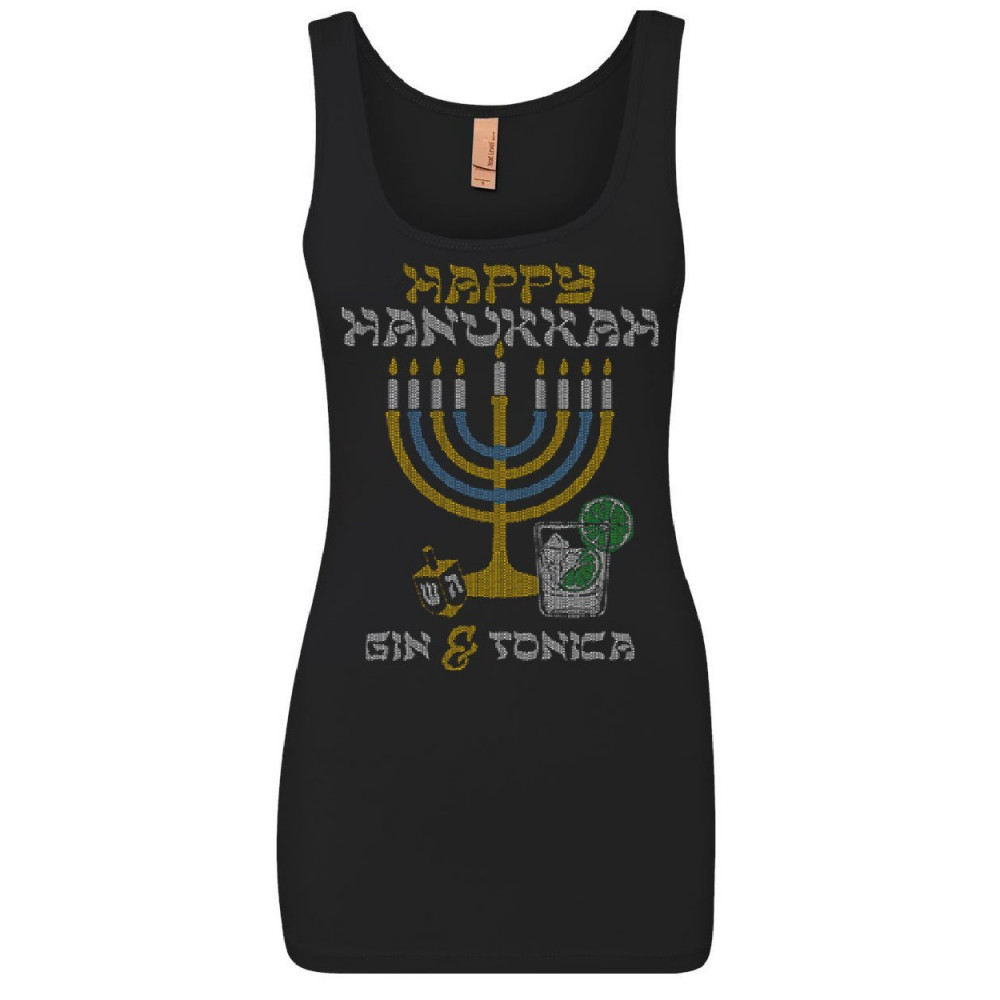HAPPY HANUKKAH GIN & TONICA happy hanukkah women's tank top menorah drinking gin & tonica dreidel top black