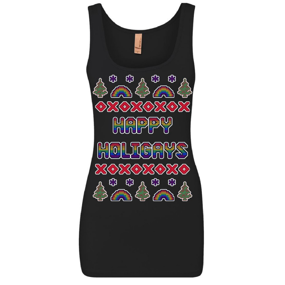 HAPPY HOLIGAYS women's tank top gay merry christmas ho ho ho lgbt xmas top black