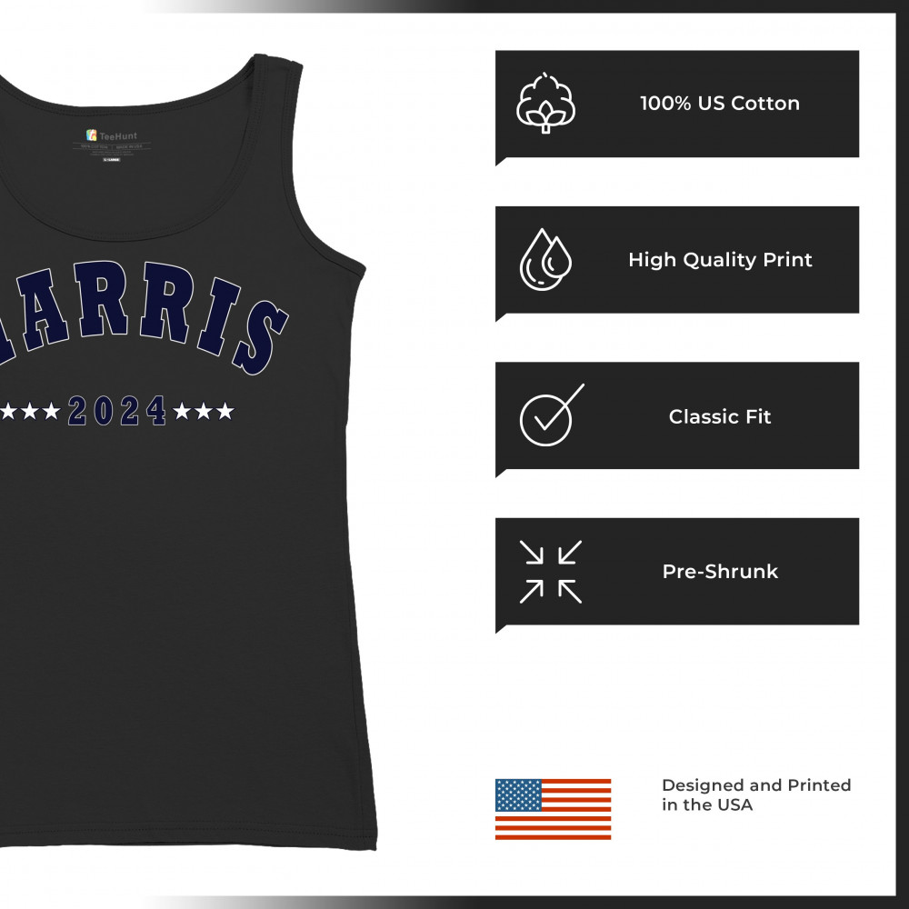 Stand with Kamala Harris and show your support for her 2024 presidential campaign with this striking design. Ideal for anti-Trump supporters, liberals, and democrats, this design features "Harris 2024" in bold lettering. Wear it to rallies, campaign events, or in your daily life to make a strong political statement. This design celebrates the historic possibility of electing the first female president and highlights the importance of representation for black Americans, Hispanic Americans, LGBTQ, and other minority communities. Make your voice heard with this powerful symbol.