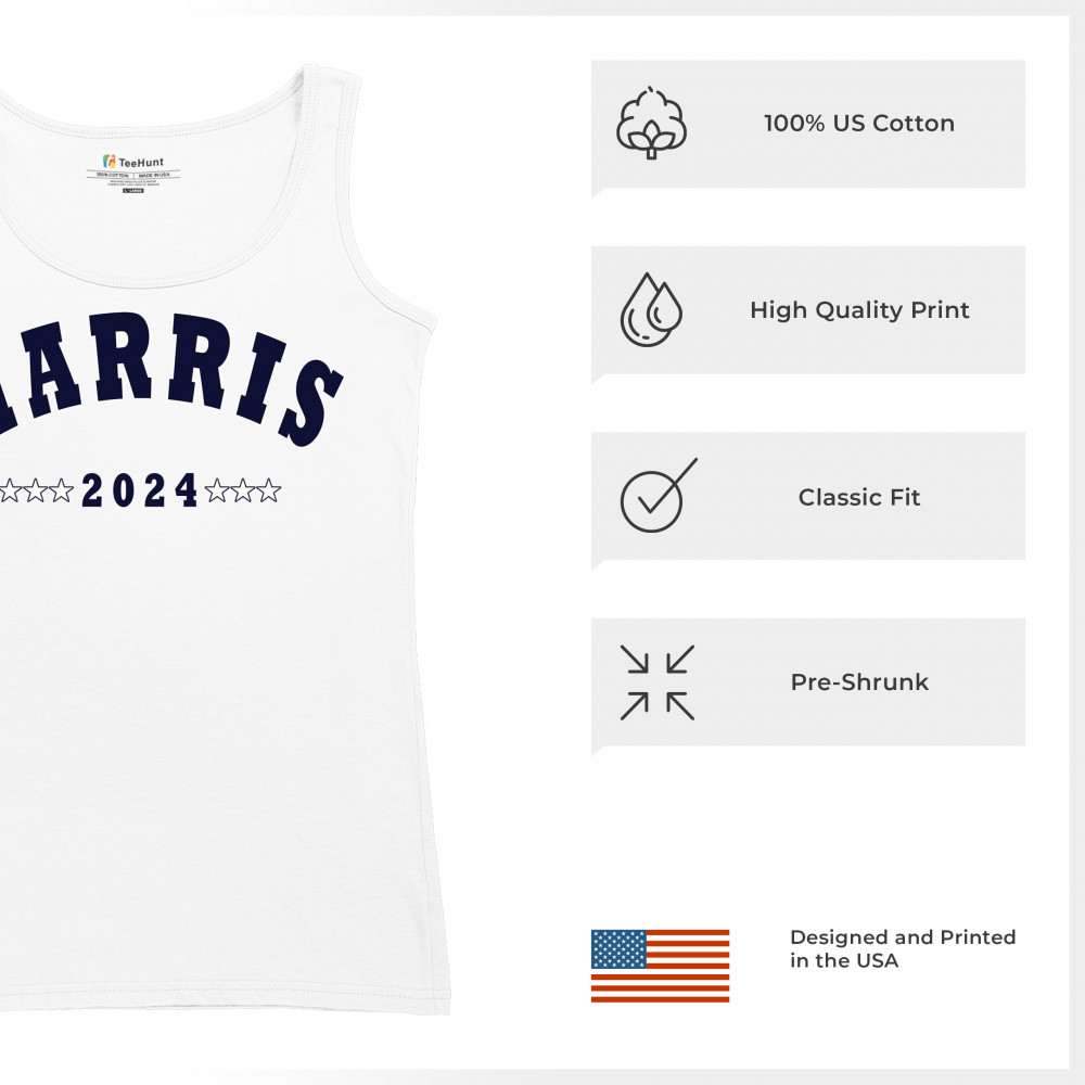 Stand with Kamala Harris and show your support for her 2024 presidential campaign with this striking design. Ideal for anti-Trump supporters, liberals, and democrats, this design features "Harris 2024" in bold lettering. Wear it to rallies, campaign events, or in your daily life to make a strong political statement. This design celebrates the historic possibility of electing the first female president and highlights the importance of representation for black Americans, Hispanic Americans, LGBTQ, and other minority communities. Make your voice heard with this powerful symbol.