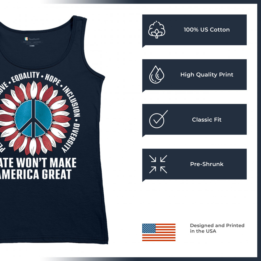 Promote peace, love, and unity with this inclusive design. Stand against hate and division. Ideal for liberal supporters who believe in equality and diversity.