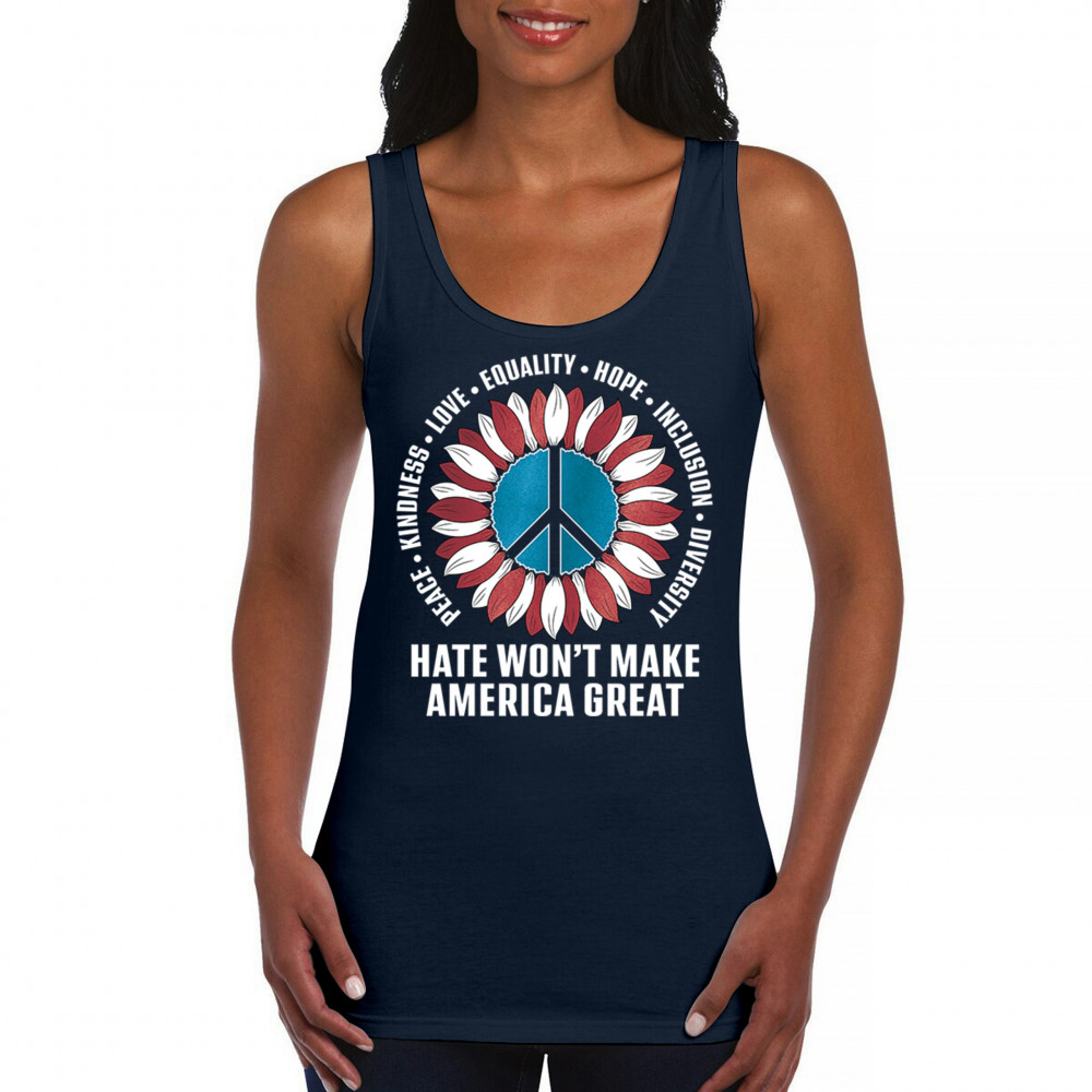 Embrace the message of love, equality, and unity with this eye-catching design. The sunflower and peace symbol represent a commitment to kindness and inclusion, rejecting hate and division. Perfect for those who support liberal values, this design is a bold statement against negativity and for a brighter future. Wear it proudly to show your belief in a diverse, united America. Let this design be a symbol of hope and progress for all.