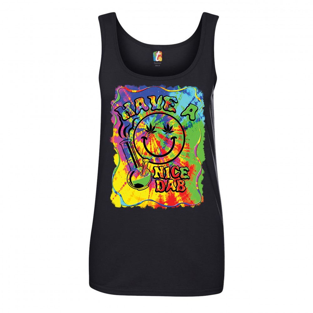 HAVE A NICE DAB women's tank top 420 happy face hitting marijuana weed bong black