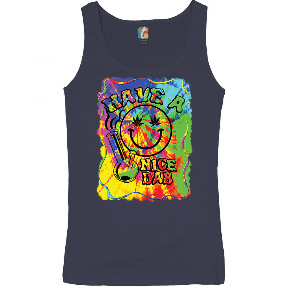 HAVE A NICE DAB women's tank top 420 happy face hitting marijuana weed bong navy blue