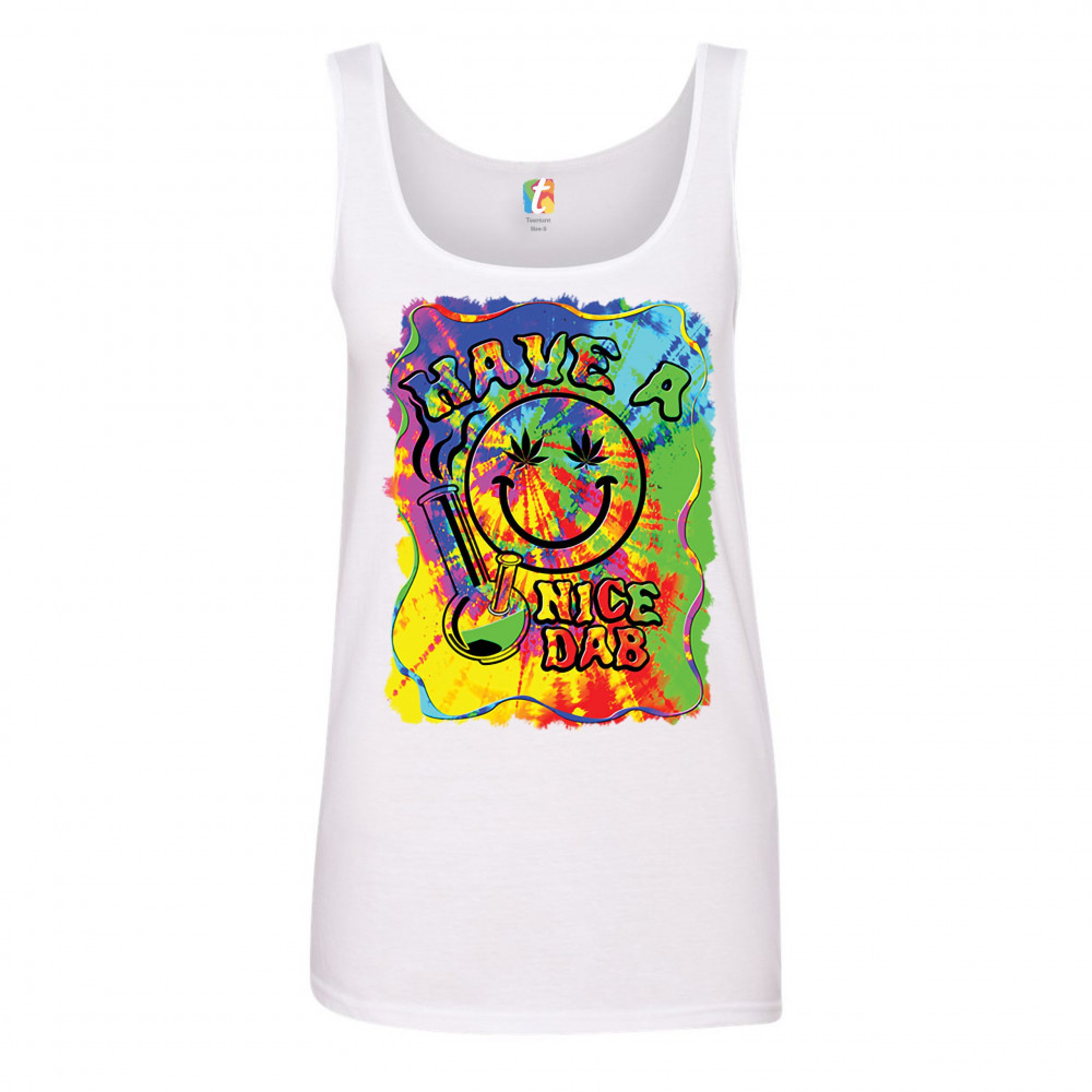 HAVE A NICE DAB women's tank top 420 happy face hitting marijuana weed bong white