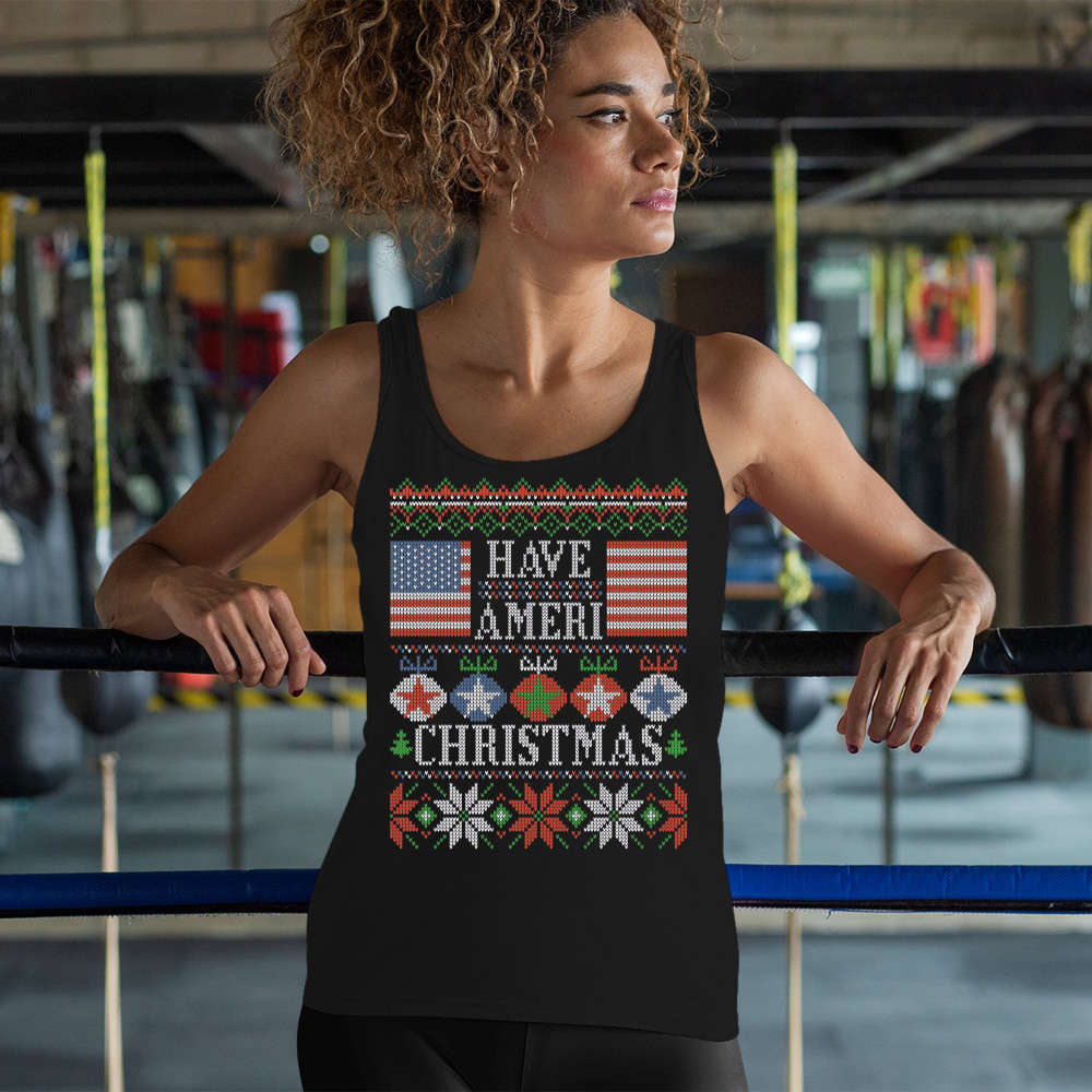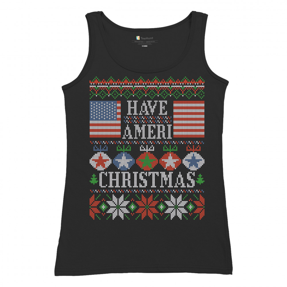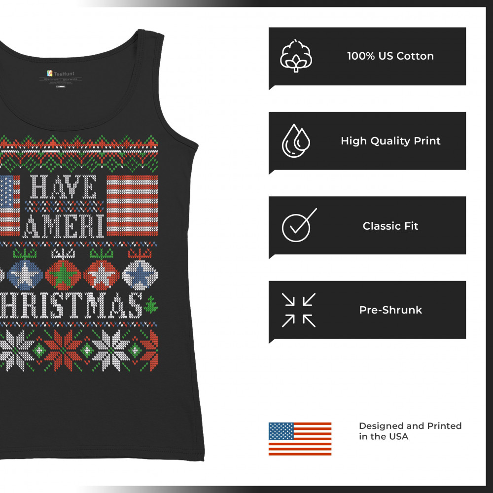 HAVE AMERI CHRISTMAS women's tank top american flag ugly sweater patriotic black