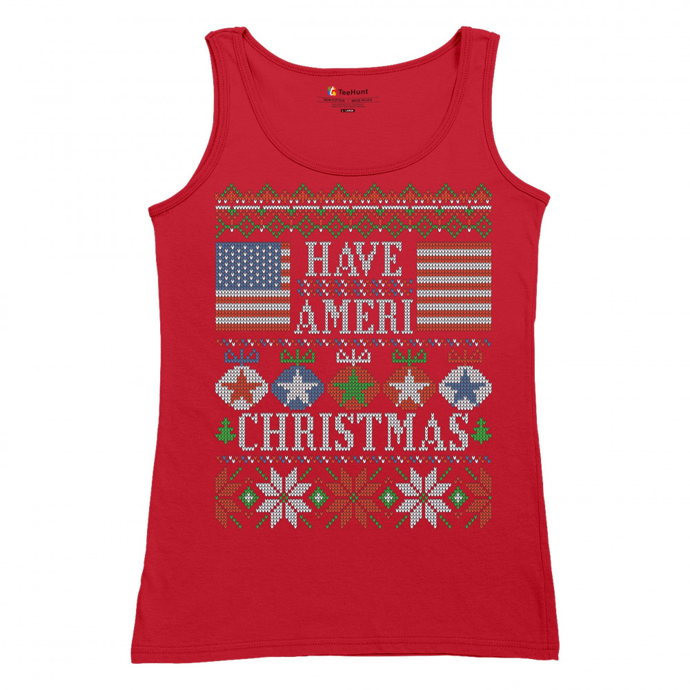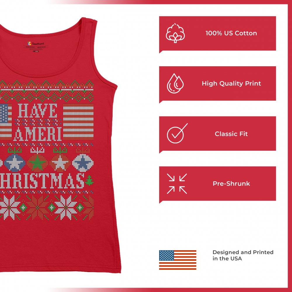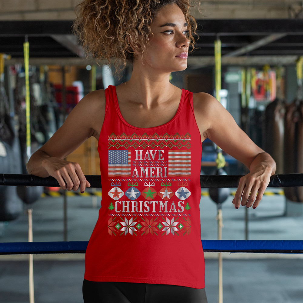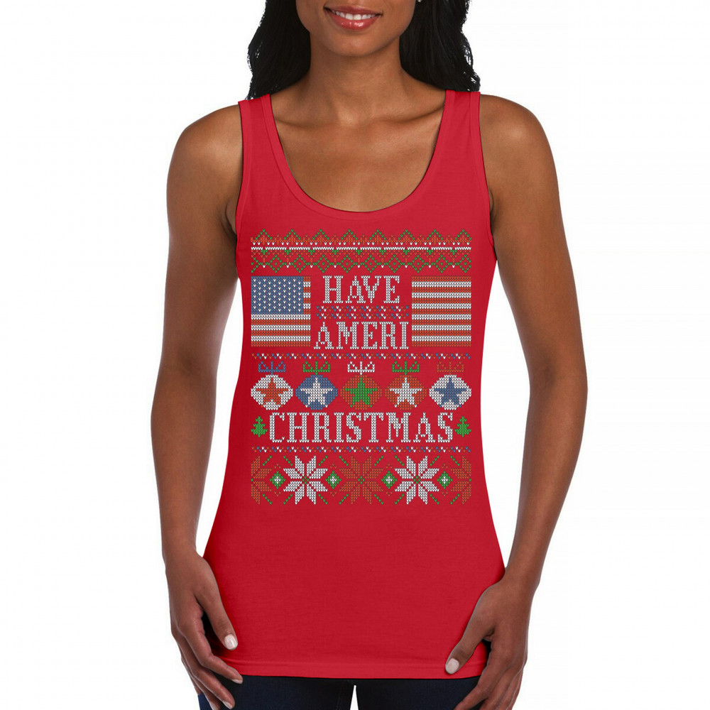 HAVE AMERI CHRISTMAS women's tank top american flag ugly sweater patriotic red