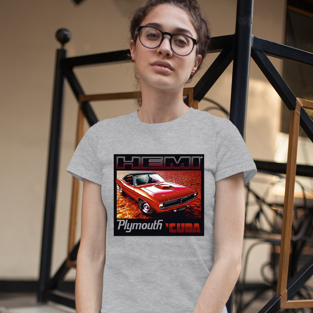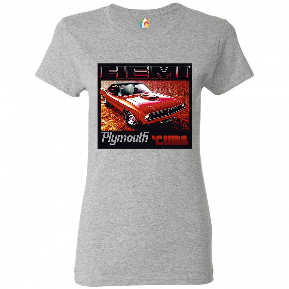 HEMI PLYMOUTH 'CUDA t-shirt american retro muscle car licensed women's tee gray