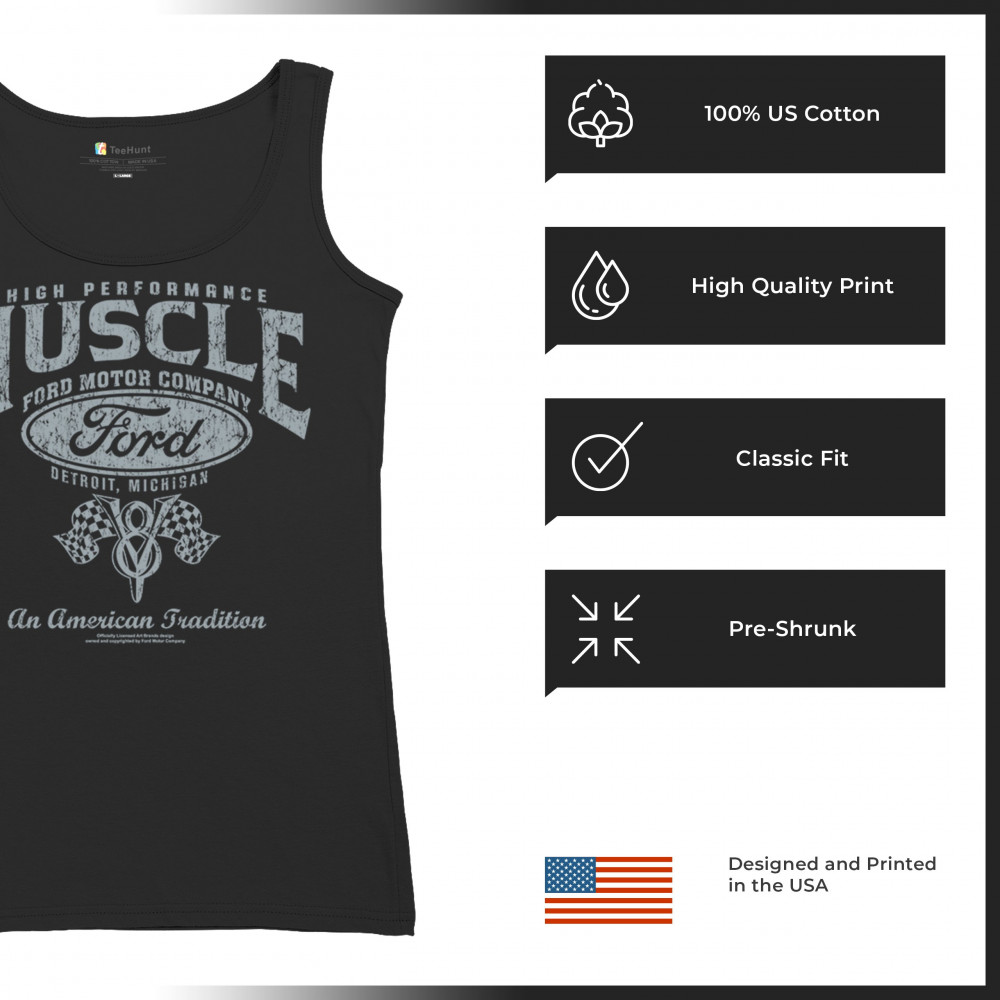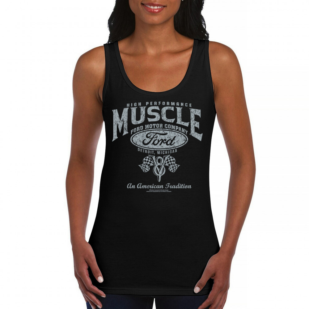 HIGH PERFORMANCE MUSCLE FORD women's tank top american tradition v8 vintage black