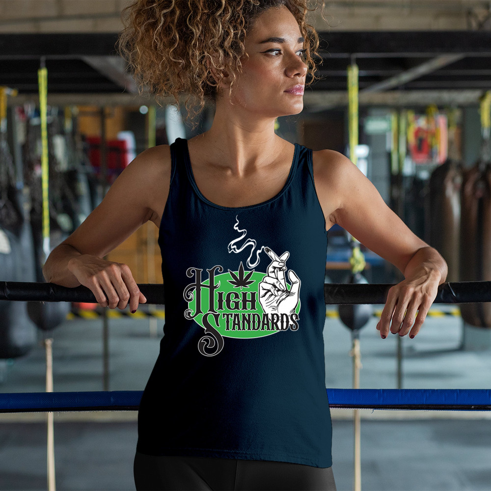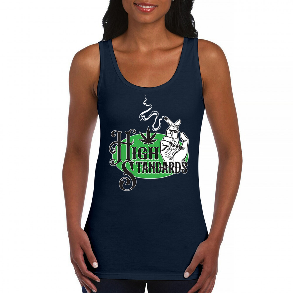 High Standards weed design with blunt humor and stoner pride. Features joint, cannabis leaf, pothead attitude, and classy chillout vibes.
