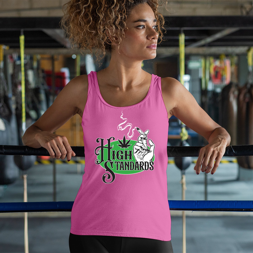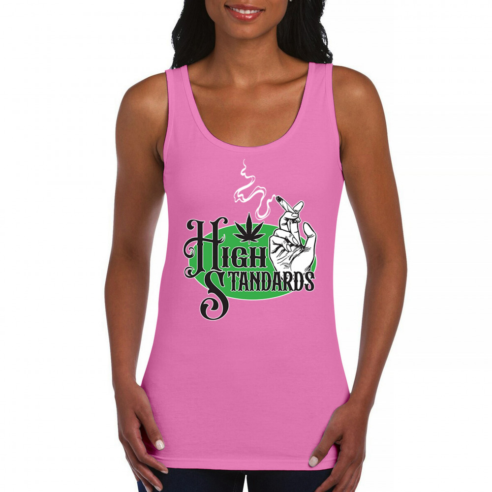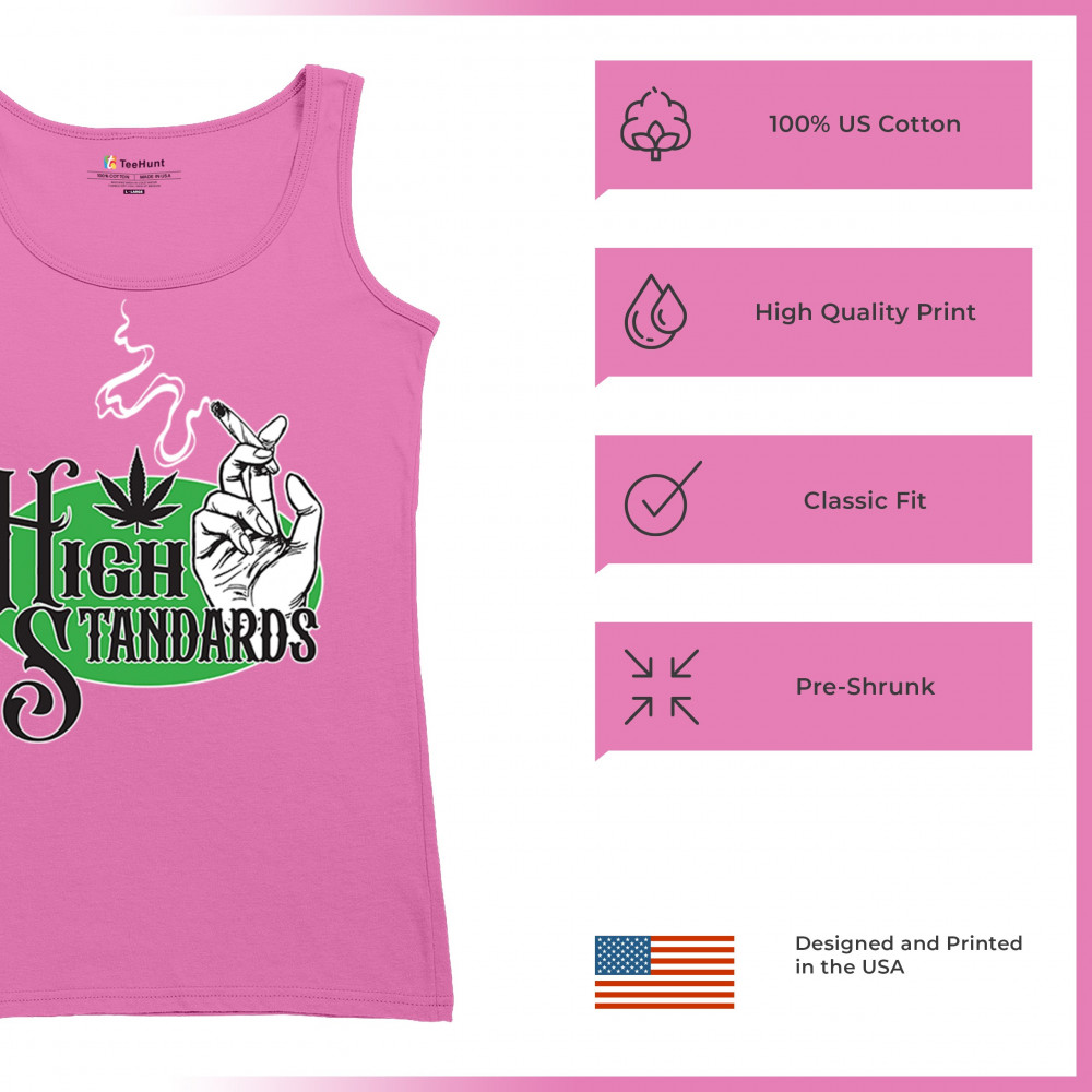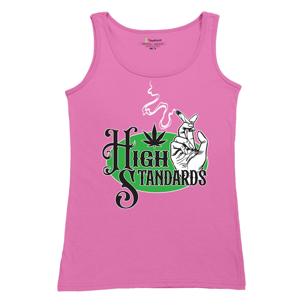High Standards weed design with blunt humor and stoner pride. Features joint, cannabis leaf, pothead attitude, and classy chillout vibes.