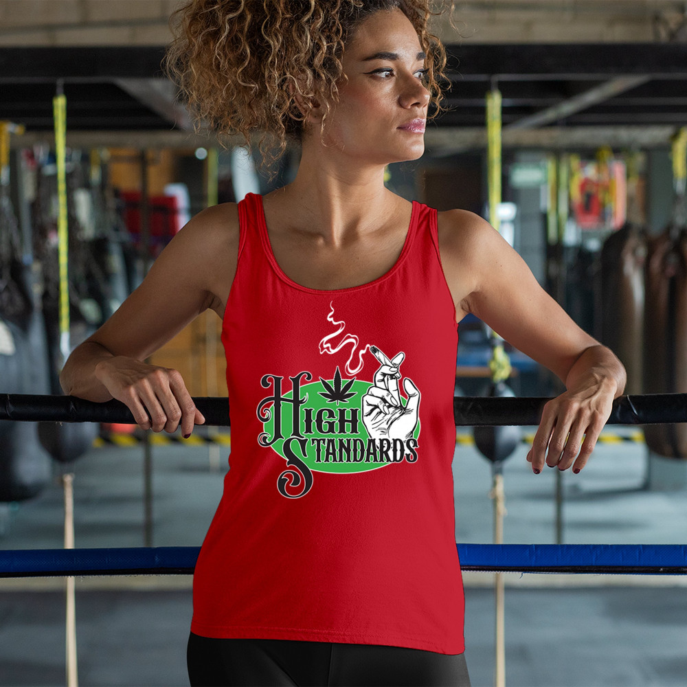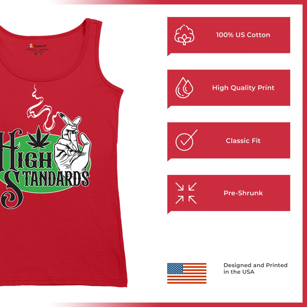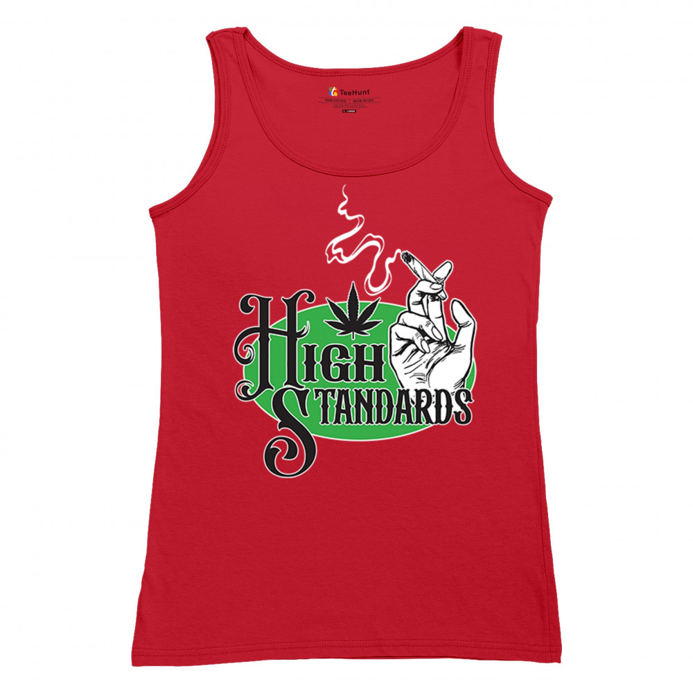 High Standards weed design with blunt humor and stoner pride. Features joint, cannabis leaf, pothead attitude, and classy chillout vibes.