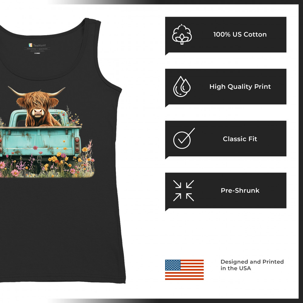 Celebrate rustic charm with this Highland Cow truck design, combining farmhouse floral truck art, boho ranch vibes, and country farmhouse shirt appeal. Perfect for cow lovers, barn style enthusiasts, and small town rural living. A vintage truck cow design that’s both cozy and stylish.