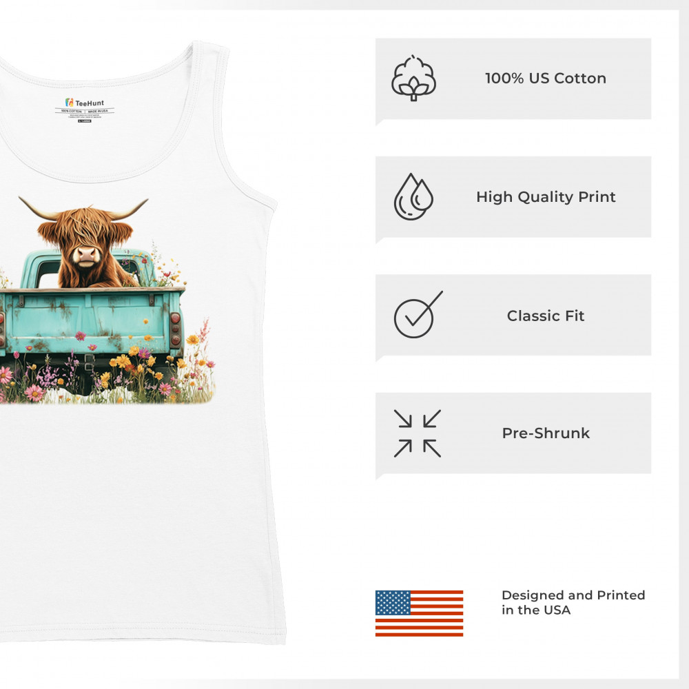 Celebrate rustic charm with this Highland Cow truck design, combining farmhouse floral truck art, boho ranch vibes, and country farmhouse shirt appeal. Perfect for cow lovers, barn style enthusiasts, and small town rural living. A vintage truck cow design that’s both cozy and stylish.