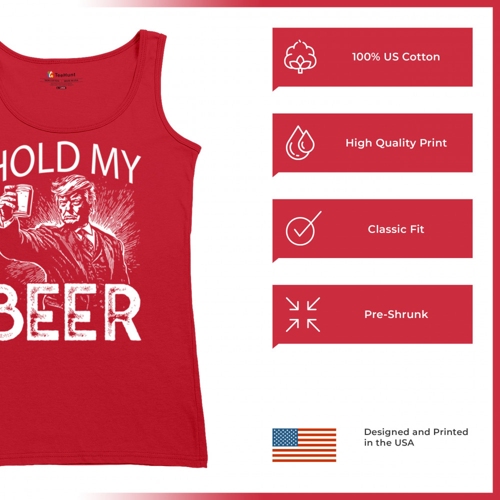 Celebrate the boldness of America First with the "Hold My Beer" design. A tribute to Trump supporters, conservatives, and proud patriots, this graphic humorously encapsulates the resilience and pride of the Red Wave movement. Perfect for rallies, casual gatherings, and those who proudly stand with Donald J. Trump, the 47th President, in the fight for freedom and the people's mandate.