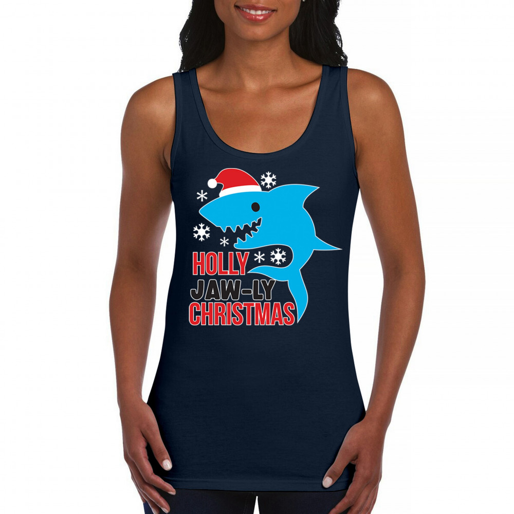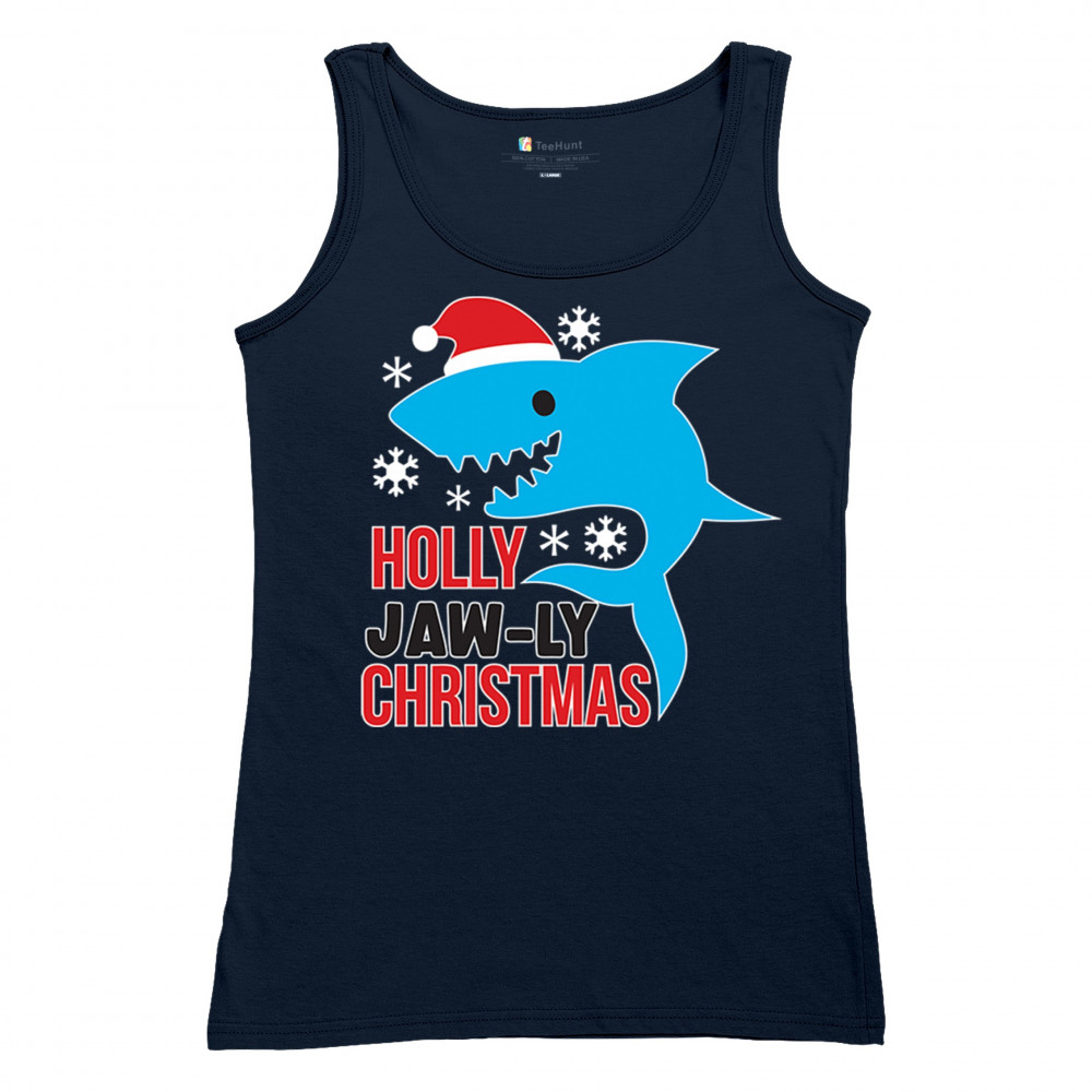 A fun Holly Jaw-ly Christmas design featuring a cheerful shark in a Santa hat with bright snowflake accents. Ideal for beach lovers, ocean fans, pun humor enthusiasts, Christmas parties, festive gatherings, white elephant events, and lighthearted winter celebrations. Brings a playful coastal vibe to holiday season outfits and gifts.