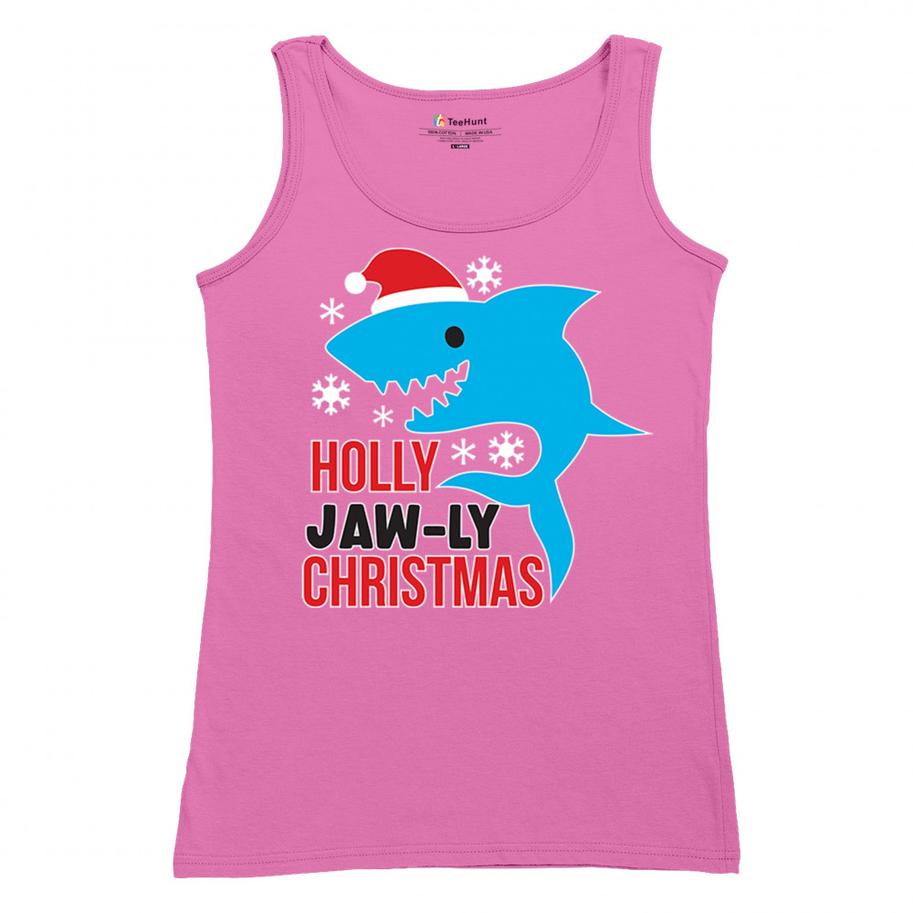A fun Holly Jaw-ly Christmas design featuring a cheerful shark in a Santa hat with bright snowflake accents. Ideal for beach lovers, ocean fans, pun humor enthusiasts, Christmas parties, festive gatherings, white elephant events, and lighthearted winter celebrations. Brings a playful coastal vibe to holiday season outfits and gifts.