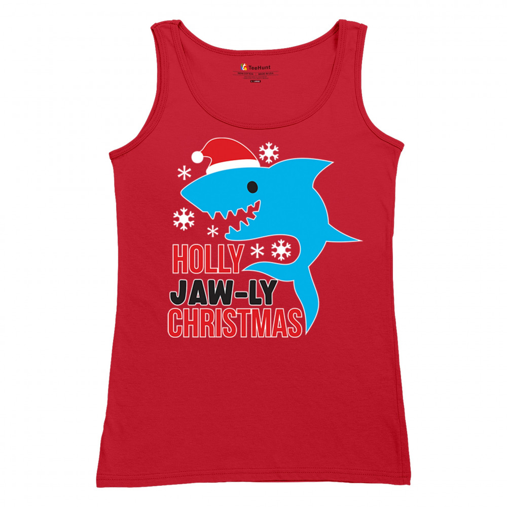 A fun Holly Jaw-ly Christmas design featuring a cheerful shark in a Santa hat with bright snowflake accents. Ideal for beach lovers, ocean fans, pun humor enthusiasts, Christmas parties, festive gatherings, white elephant events, and lighthearted winter celebrations. Brings a playful coastal vibe to holiday season outfits and gifts.