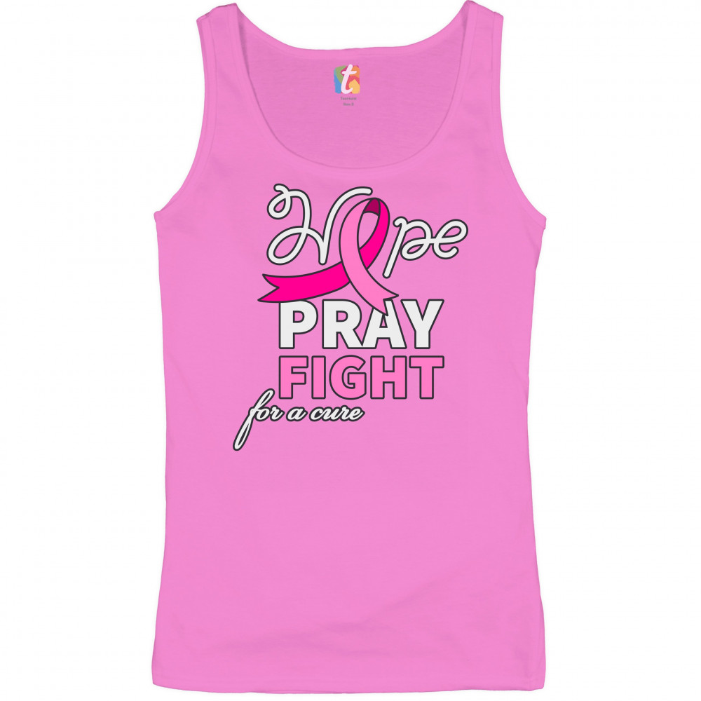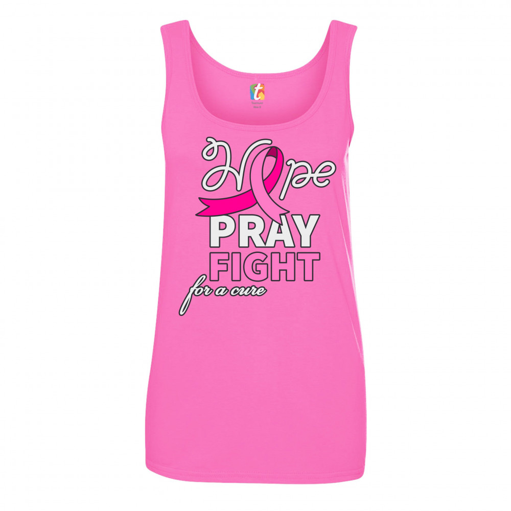HOPE PRAY FIGHT FOR A CURE women's tank top cancer awareness pink ribbon pink
