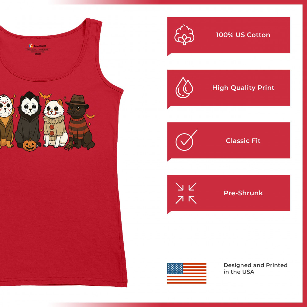 Horror Cats Halloween design with spooky costumes, Jack o Lantern details, and Haunted House vibes. Perfect October 31 outfit for cat lovers.