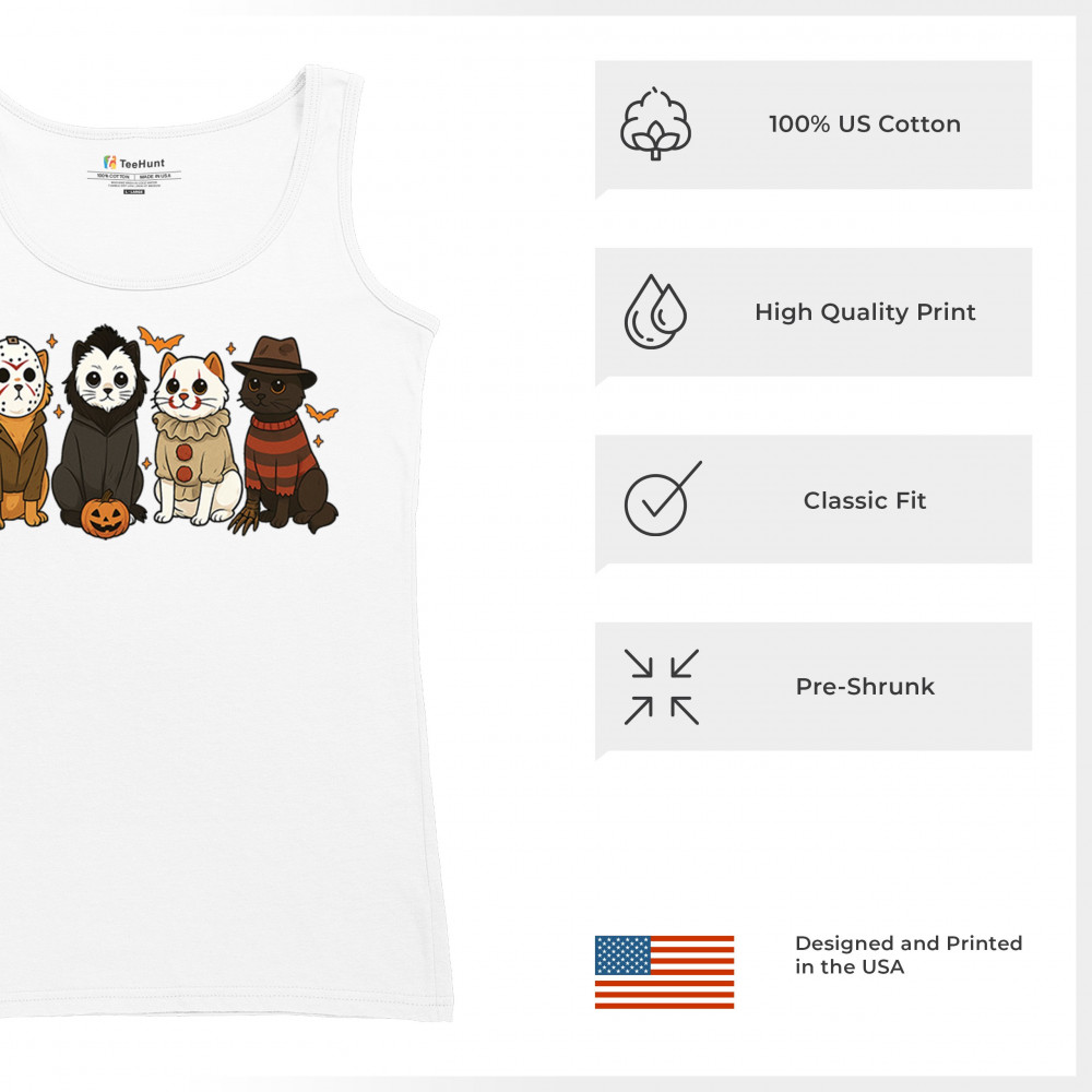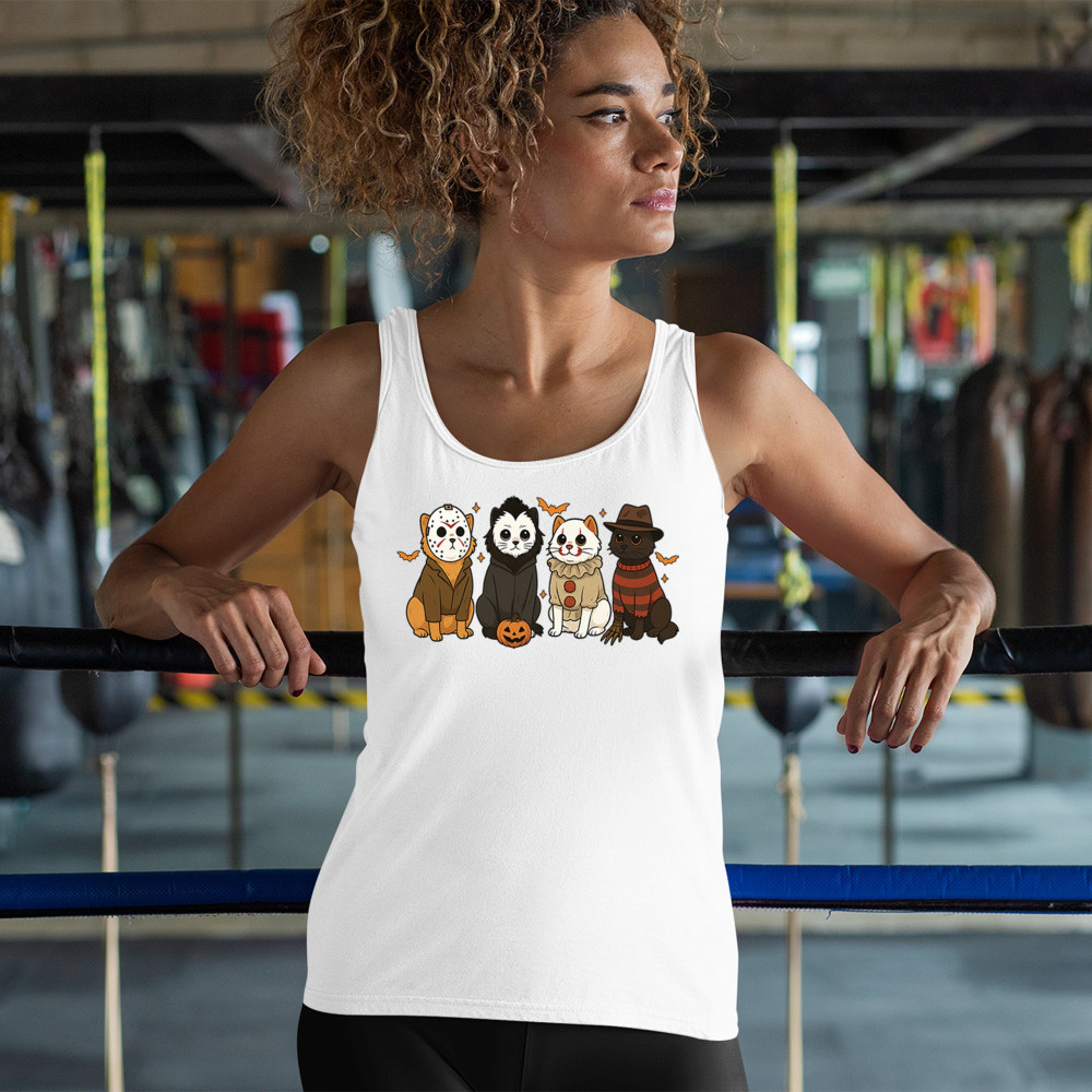 Get into the Halloween spirit with this Horror Cats Halloween design featuring spooky felines in creepy costumes. From Jack o Lantern details to Haunted House energy, it’s perfect for celebrating October 31 with festive style. A playful blend of Halloween vibes, autumn night chills, and witch-inspired magic, this design makes a great Halloween outfit for cat lovers and spooky fans alike.