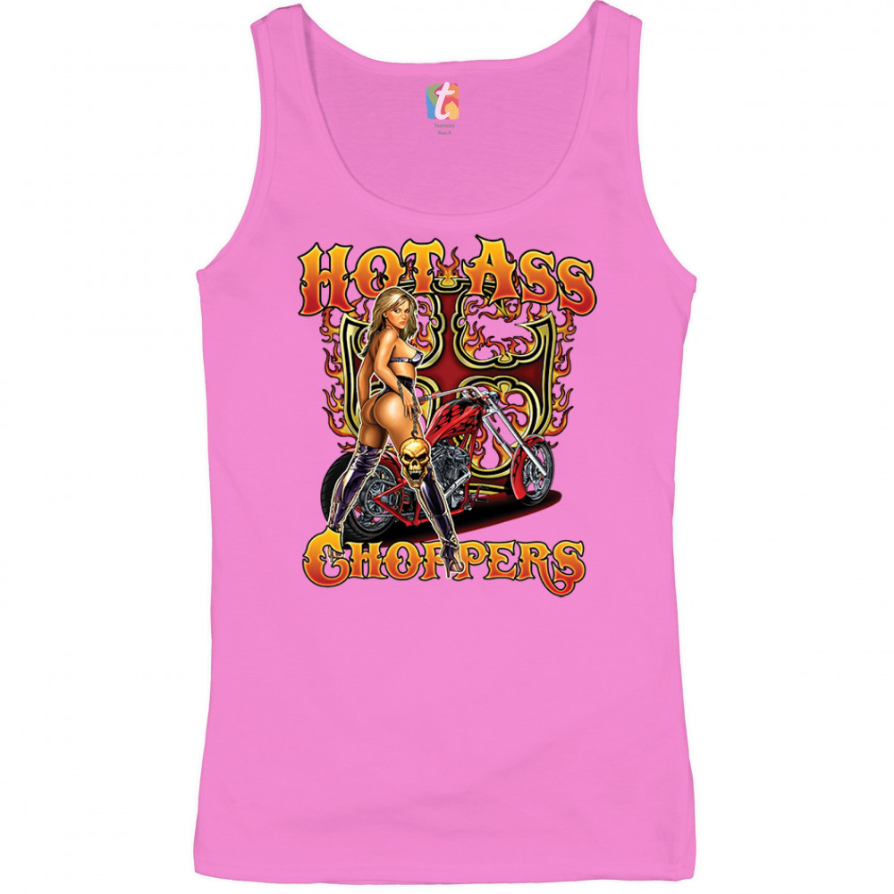 HOT ASS CHOPPERS women's tank top born to be wild route 66 hot chick pink
