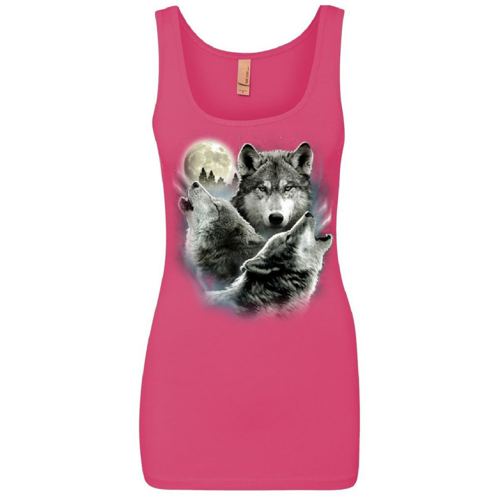 WOLF PACK HOWLING UP TO THE MOON howling wolf pack women's tank top wild wilderness animals nature moon top pink