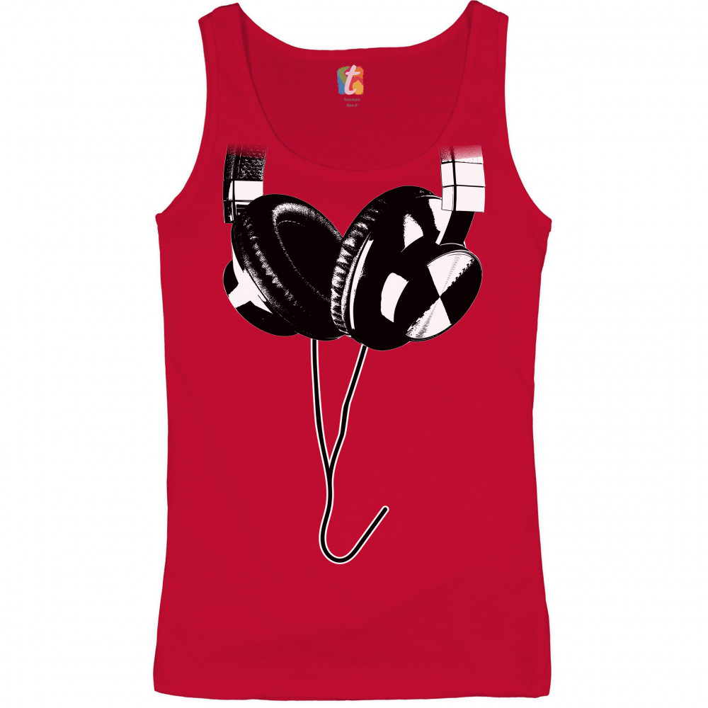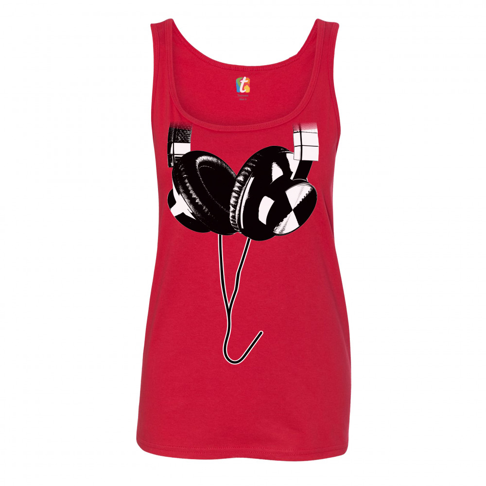 HUGE HANGING HEADPHONES women's tank top dj music red